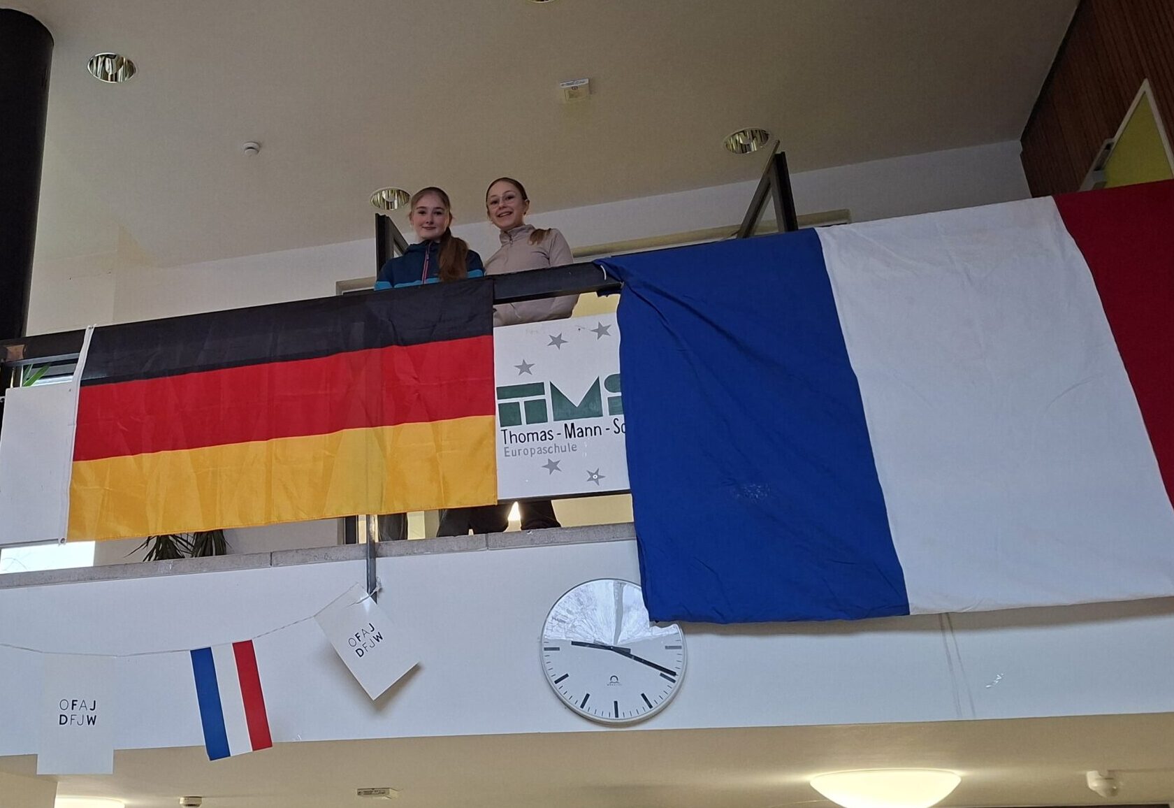 Eigentlich ist der deutsch-französische Tag offiziell der 22. Januar, an der TMS wurde er dieses Jahr jedoch erst am 29.1. gefeiert, weil das Profilseminar ProInt des Französisch-Sprachprofils in Q1 viel für die anderen Klassen vorbereitet hatte, am 22.1. jedoch im Praktikum war.