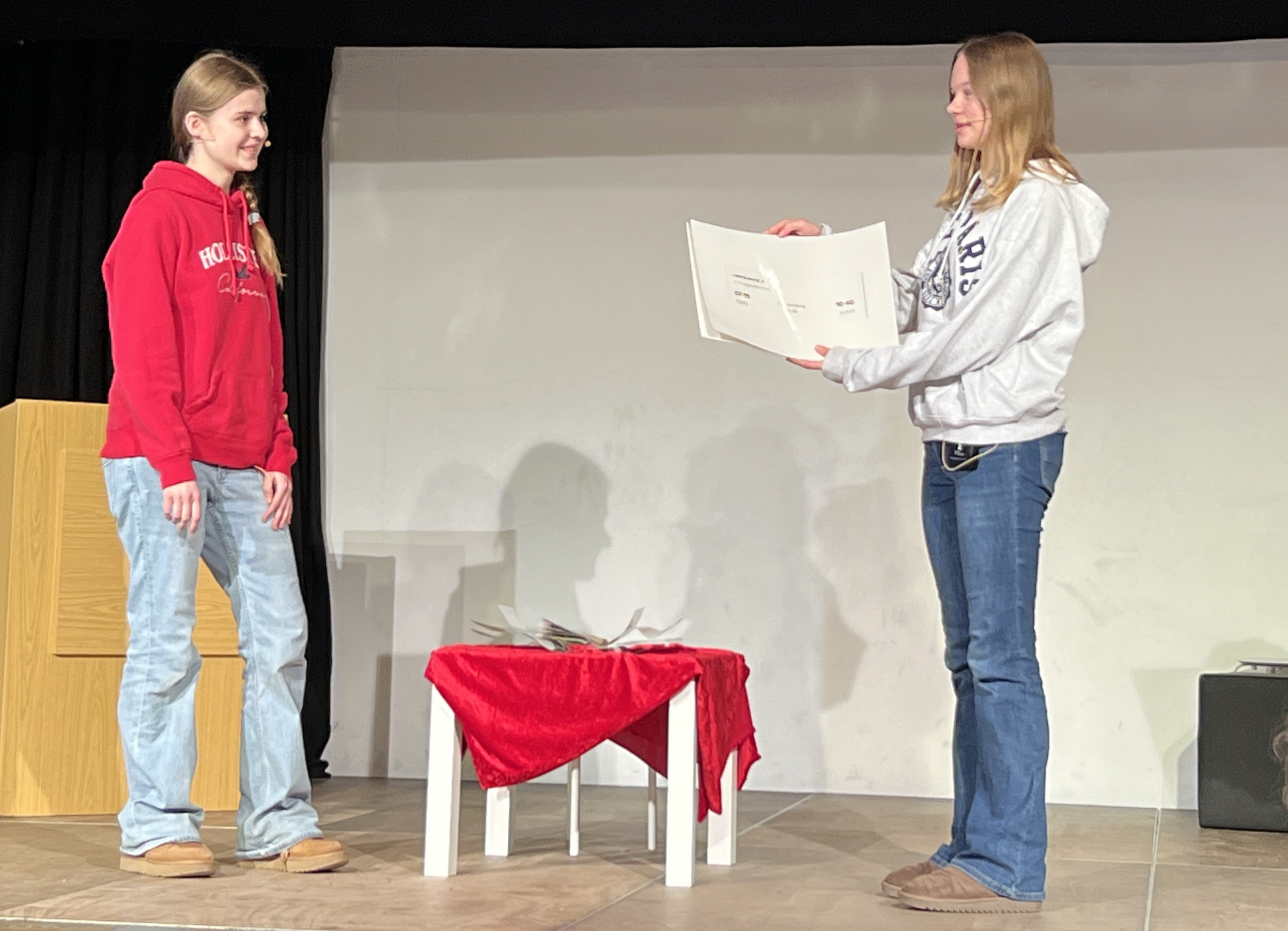 Aber es gab noch mehr Aktivitäten, zum Beispiel führte der WPU-Kurs „Französisch spielend“ der neunten Klassen der 8b kleine selbstgeschriebene Szenen vor, in denen es um einen Arztbesuch, den Besuch des Louvre, einen Cafébesuch oder um eine Buchhandlung sowie eine Reise nach Paris geht.