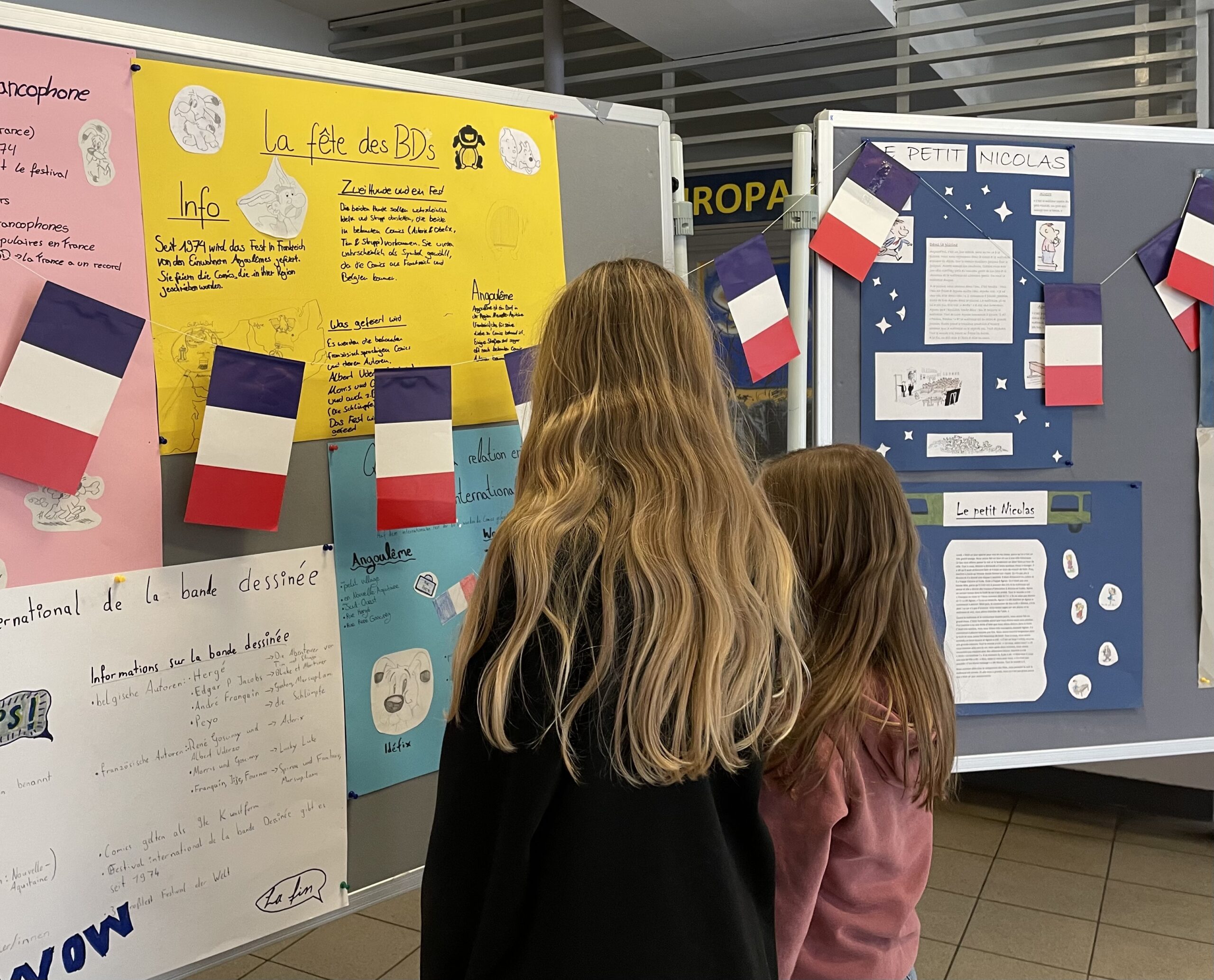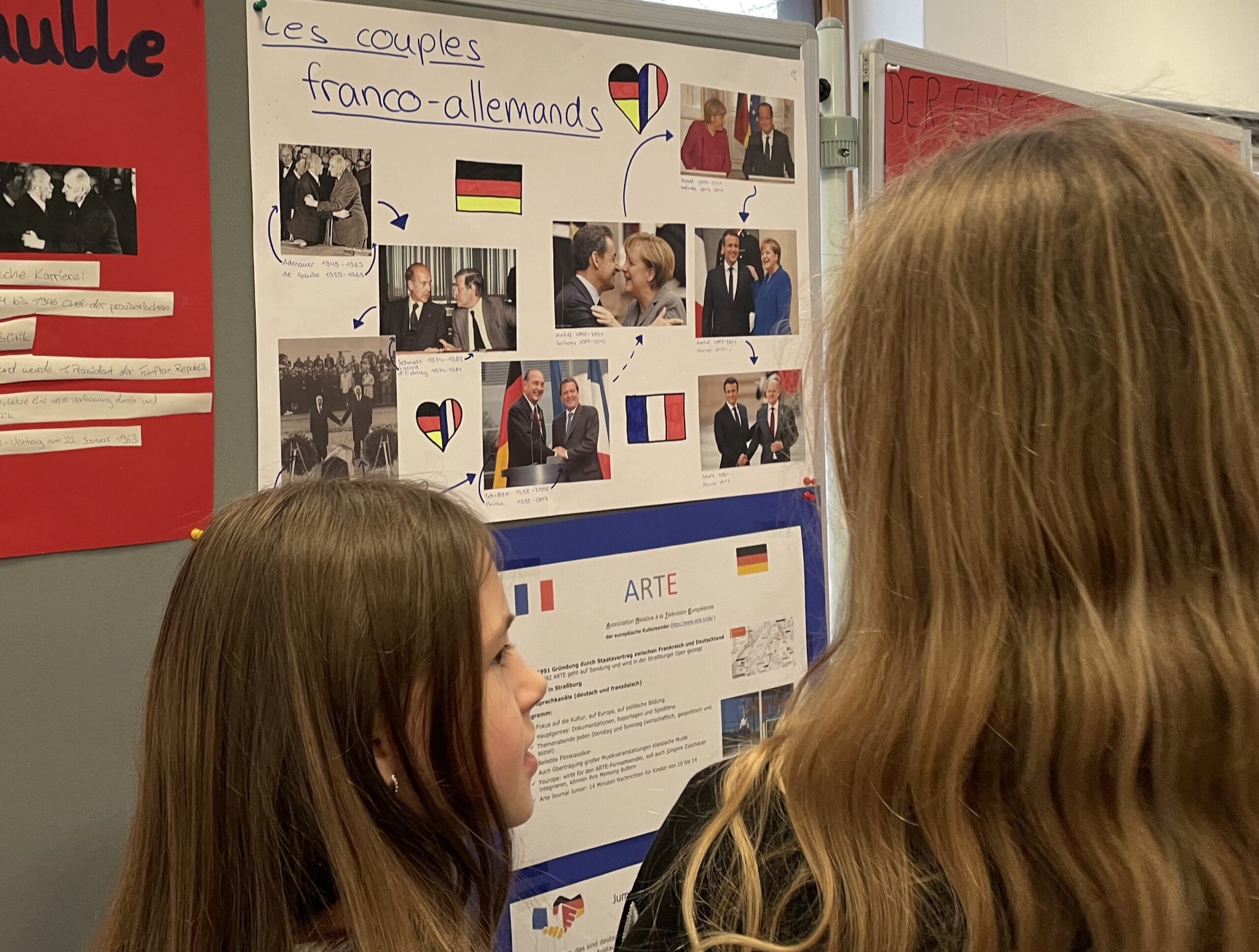 Die 8c schmückte zum 22.1. die Schule unter anderem mit Informationen zum geschichtlichen Hintergrund dieses Tages und zum Frankreichaustausch unserer achten Klassen.
