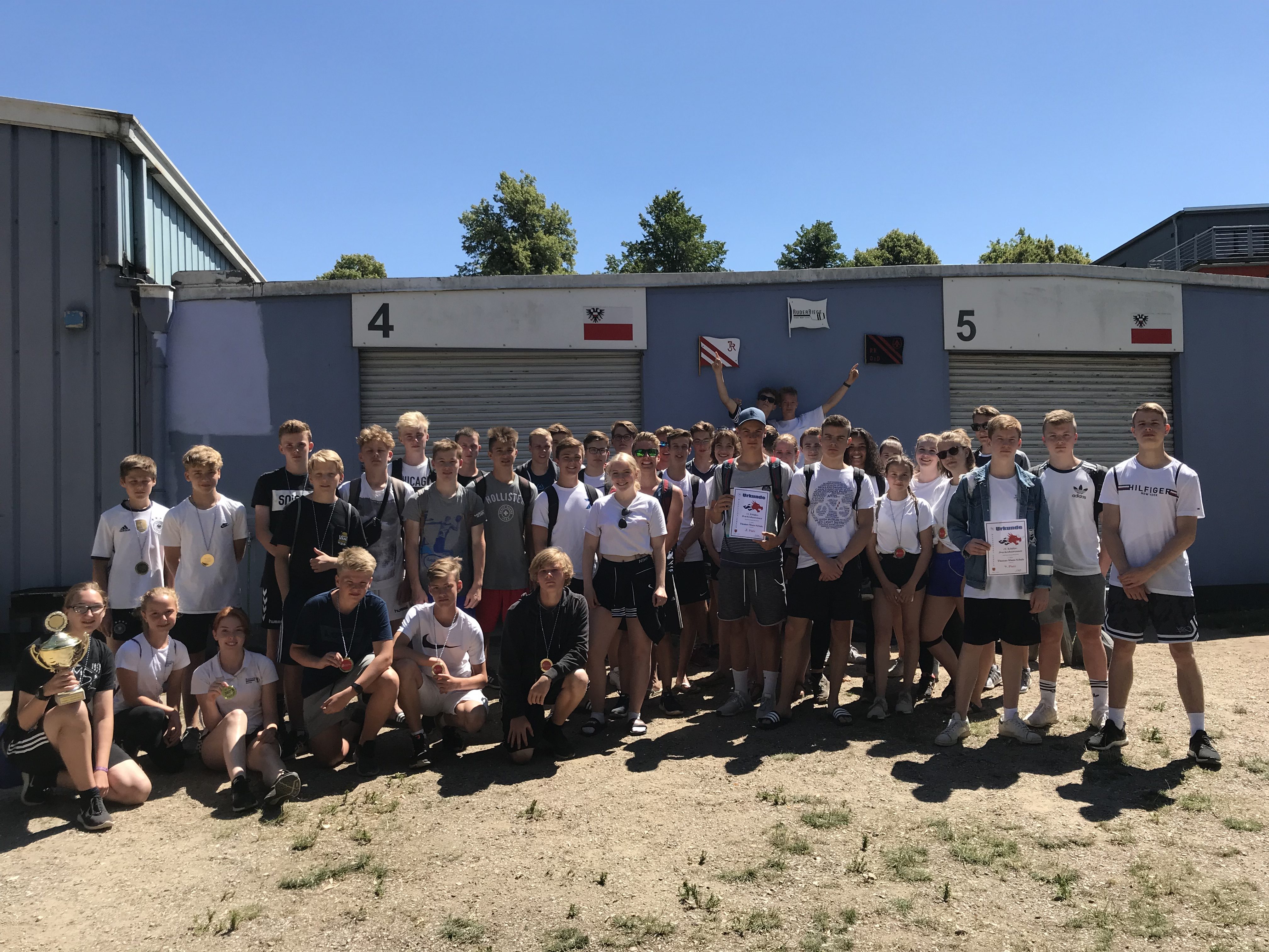 Beide Mannschaften haben sich toll geschlagen und gut gepaddelt. Es hat knapp nicht für den ersten Platz gereicht. Einer der beiden Pokale ziert wieder die Sportvitrine der TMS, auf dem anderen Wanderpokal wird nun auch mal ein anderer Name verewigt. Vielleicht schaffen die Schülerinnen und Schüler es ja im nächsten Jahr den Pokal wieder an die TMS zurückzuholen. Wer weiß…