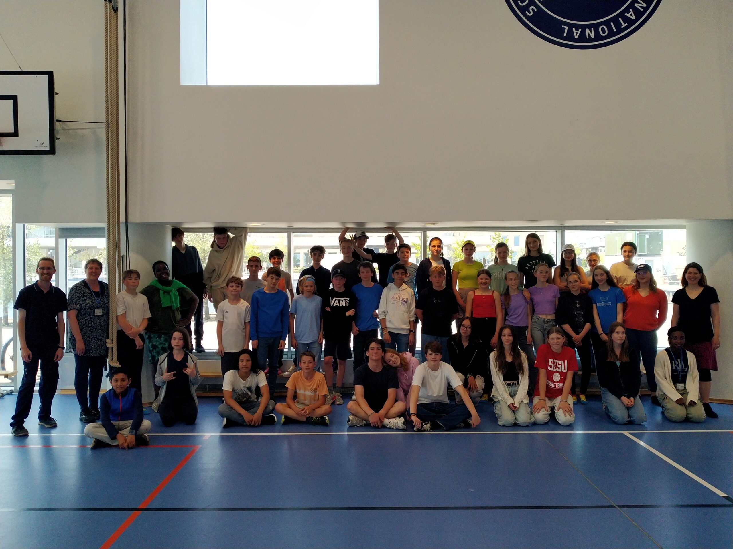 Nach dem Mittagessen spielten wir noch in der Turnhalle Dodgeball, das ist so ähnlich wie Völkerball. Das hat Riesenspaß gebracht. Nach zwei Runden machten wir noch ein Gruppenfoto und mussten uns dann auch leider wieder verabschieden.