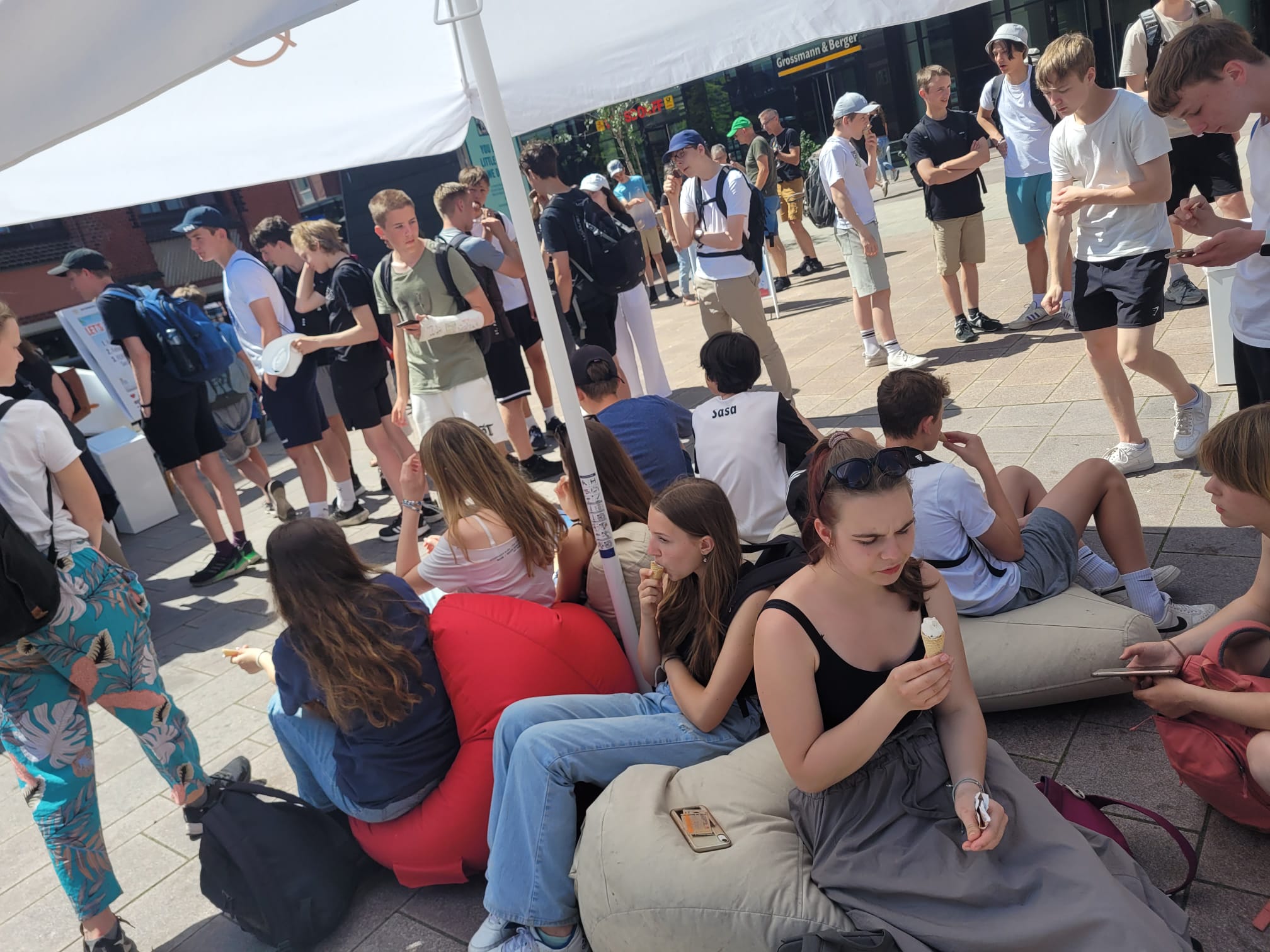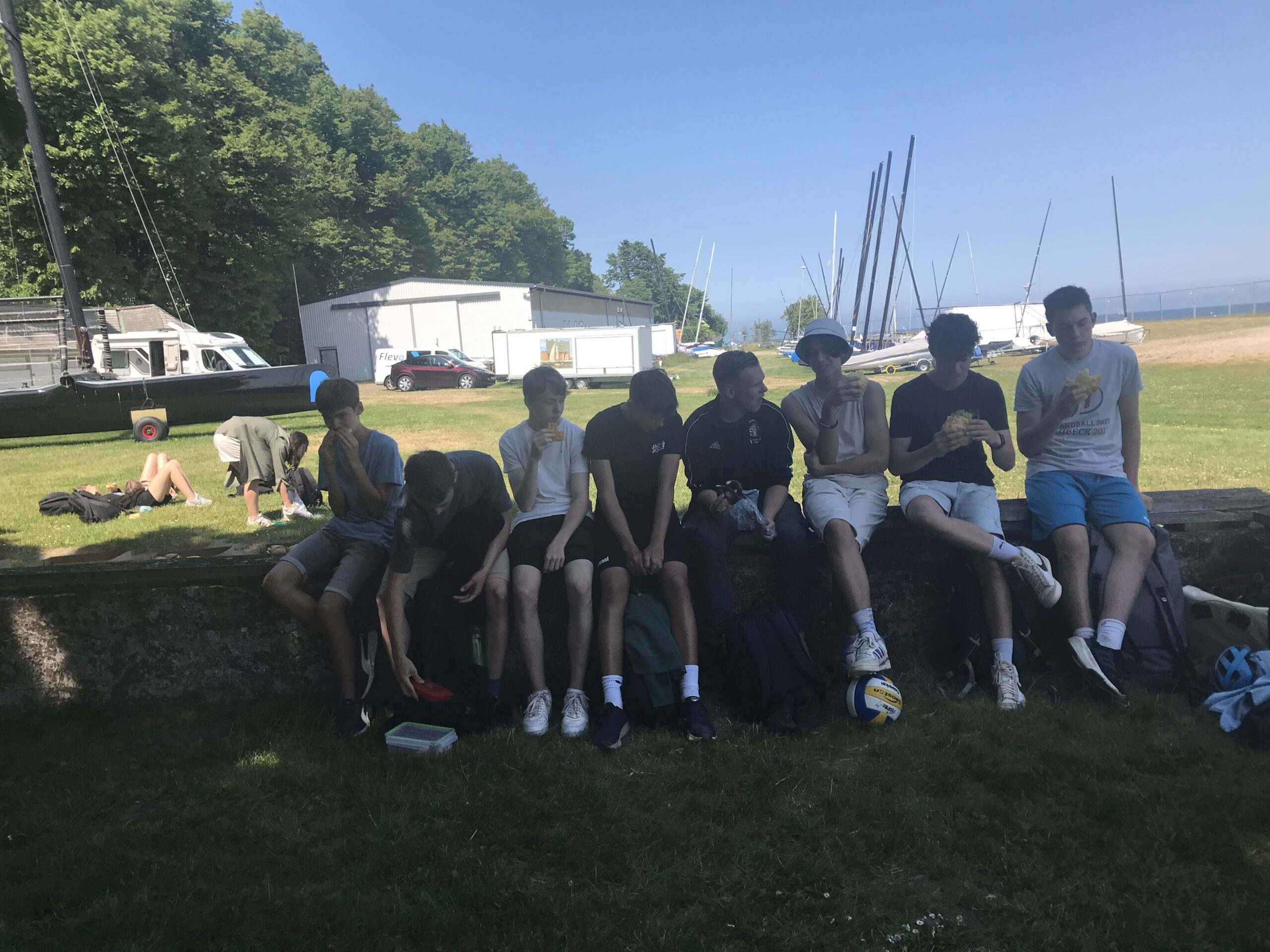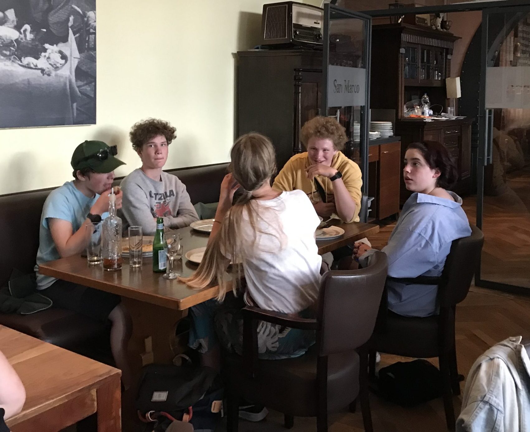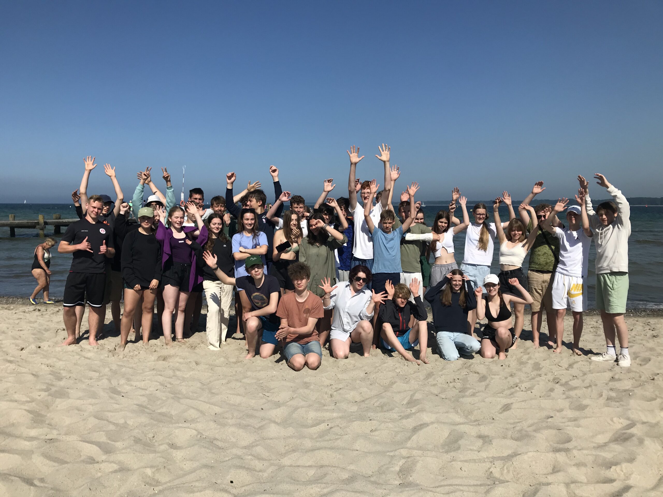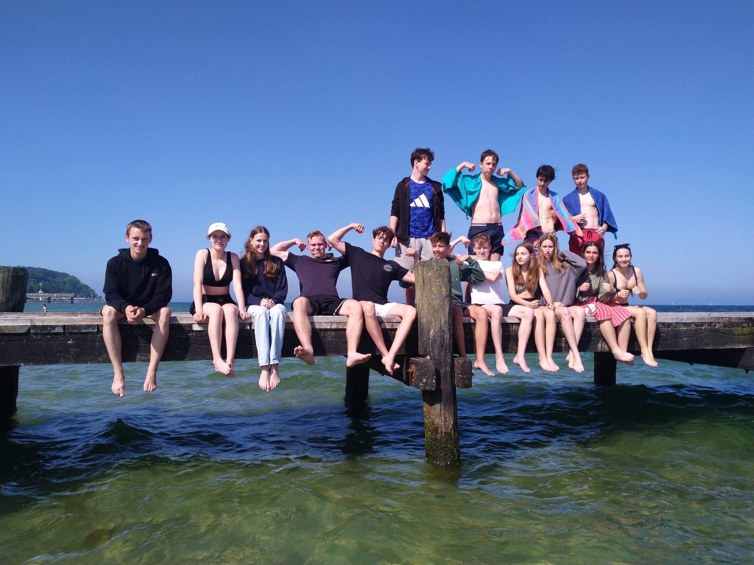 Nach Unterrichtshospitationen in den ersten drei Stunden, in denen die Gäste aus Prag unsere Unterrichtskultur erlebten, brachen die Schülerinnen und Schüler am Donnerstag nach Travemünde auf. Wie Hanno Buddenbrook genossen sie, Verpflichtungen hinter sich zu lassen, Wärme, Weite und Nichtstun zu genießen. Mit einem Picknick unterm Kastanienbaum stärkten sich alle für das erste Bad in der noch frischen Ostsee, das unser Schulleiter Dirk Rother als Sportlehrer den Jugendlichen ermöglichte.