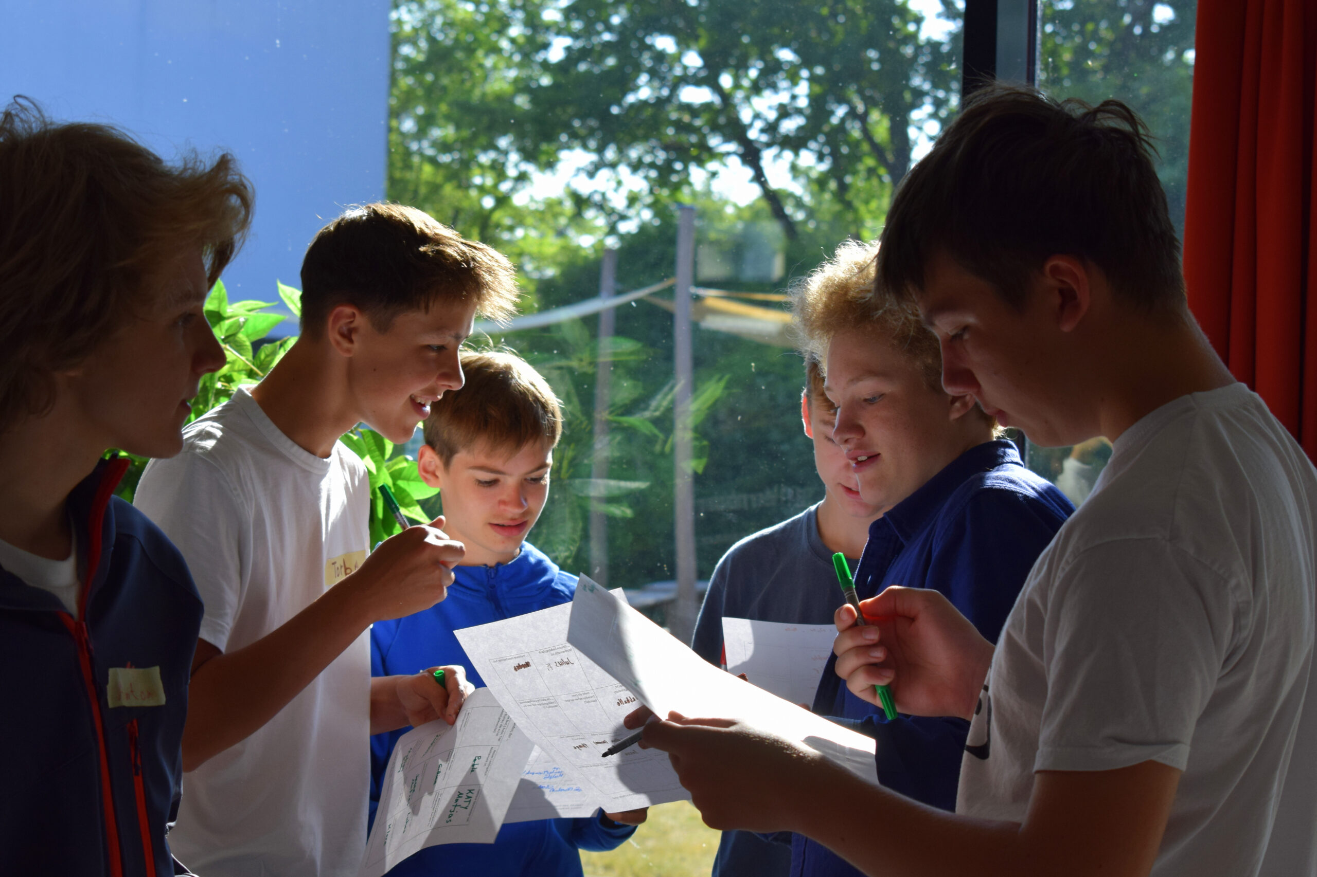 Zunächst lernten sich die Teilnehmer mit Hilfe eines Fragebogens kennen. Anschließend machten sie sich mit der Handlung des Romans „Buddenbrooks“, für den der Namensgeber unserer Schulen 1929 den Literaturnobelpreis bekommen hat, und dessen Hauptfiguren vertraut.