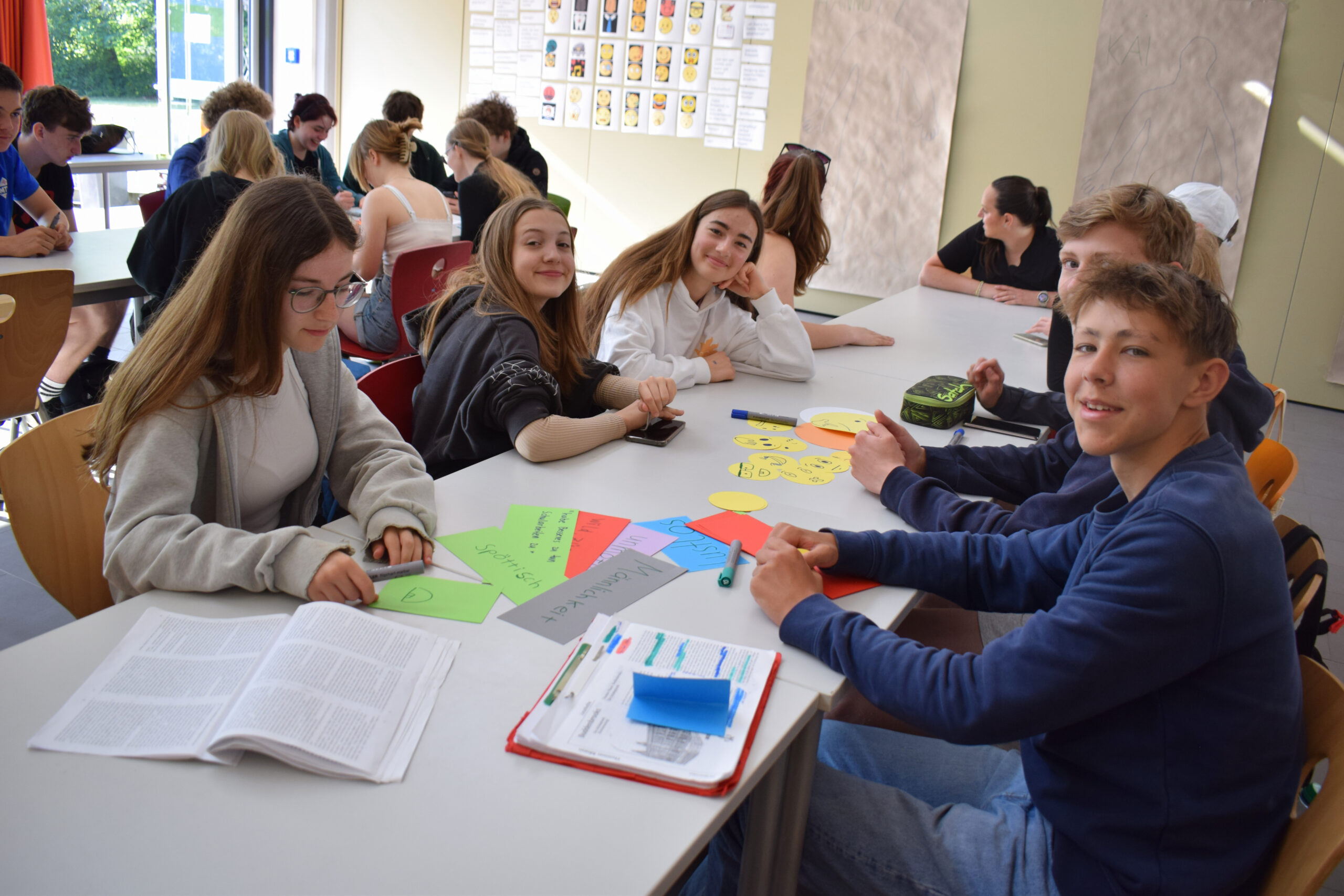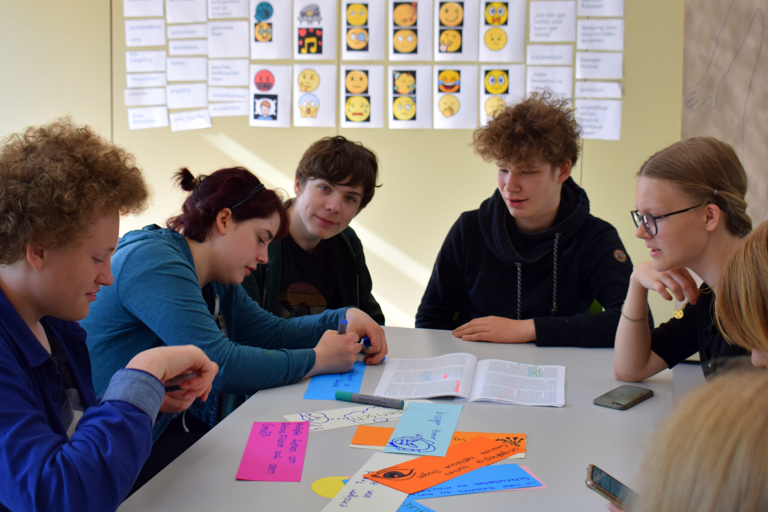 Deutschlehrerin Christina Dudzik forderte die tschechisch-deutsch gemischten Gruppen dazu auf, Adjektive und Zitate der Hauptfigur Hanno Buddenbrook, seinem Freund Kai Graf Mölln, der Gruppe der Lehrer und übrigen Schüler zuzuordnen. Auch mithilfe ausdrucksstarker Emojis veranschaulichten sie deren Eigenschaften treffend.
