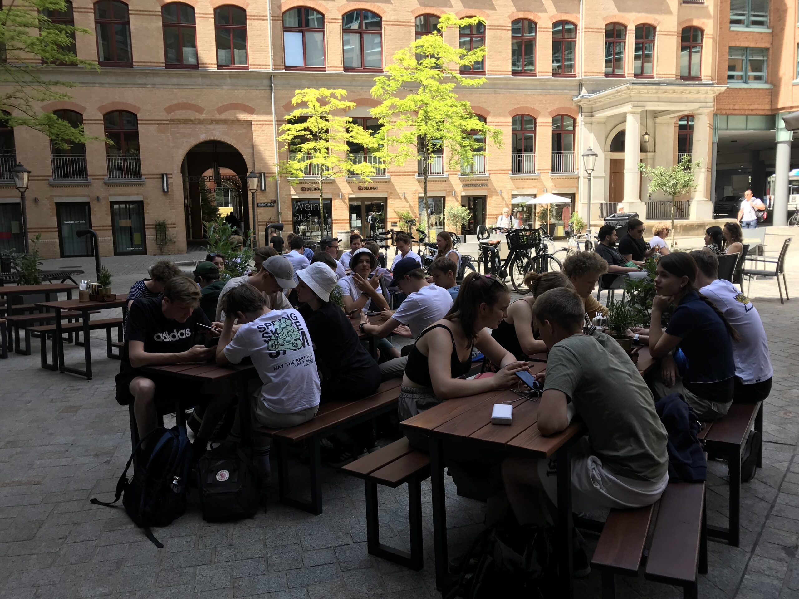 Schließlich saßen alle in einem schattigen Innenhof im Zentrum zum Mittagessen zusammen, bevor sie zur Stadterkundung in Kleingruppen aufbrachen.