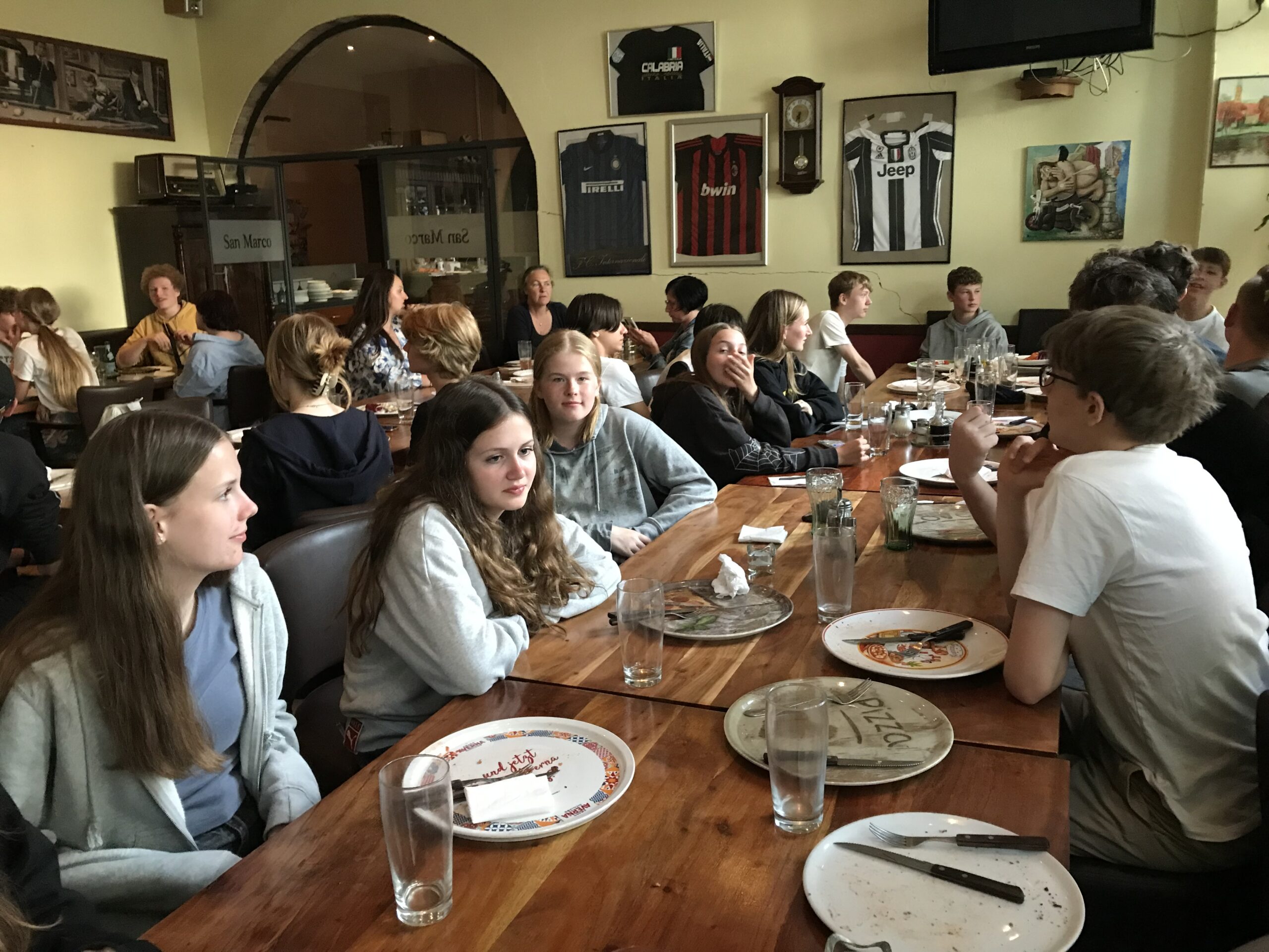 Beim Abschied in einem Lübecker Lokal tauschten sich dann die Schülerinnen und Schüler über ihre Erfahrungen im Austausch aus. Anhand der Finger einer Hand erfolgte die Auswertung: