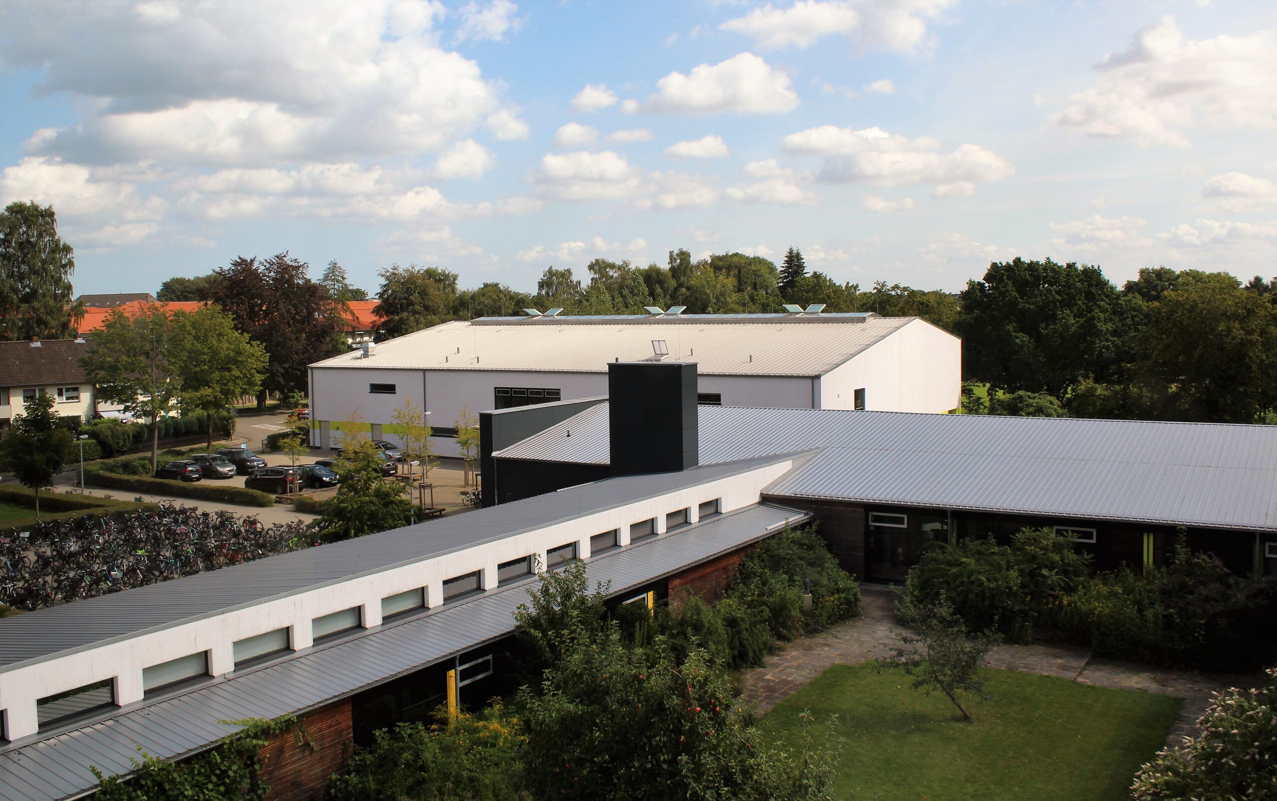Unsere Schule liegt im Grünen in der Nähe der Wakenitz. Zahlreiche, z.T. überdachte Fahrradständer bieten gesicherte Abstellmöglichkeiten für das am häufigsten genutzte Transportmittel unserer Schülerinnen und Schüler. Der Fachunterricht, z.B. in Biologie oder Kunst findet  auf dem weitläufigen Schulgelände mit Bäumen, Knicks und Steuobstwiese vielfältiges Anschauungsmaterial.