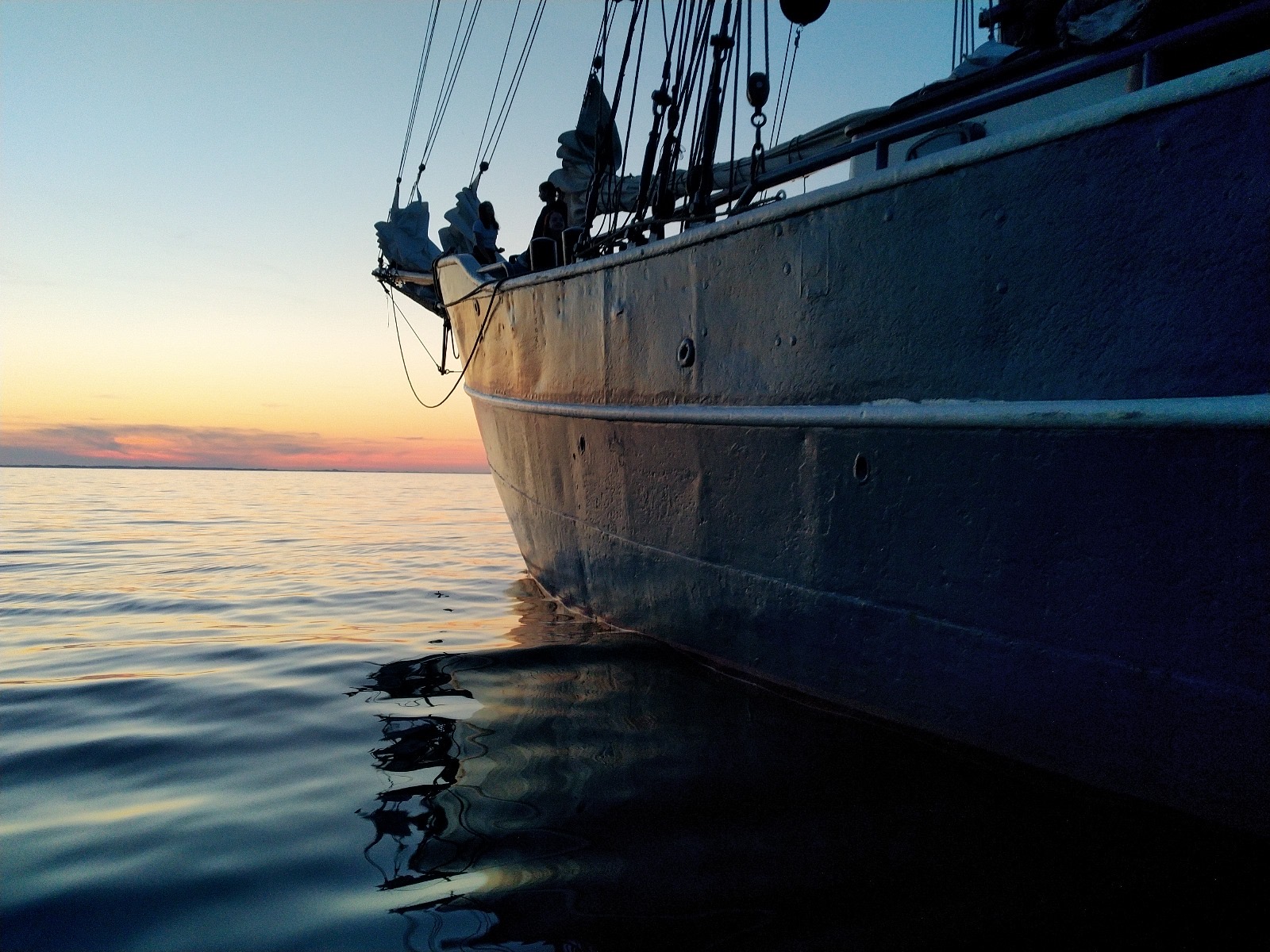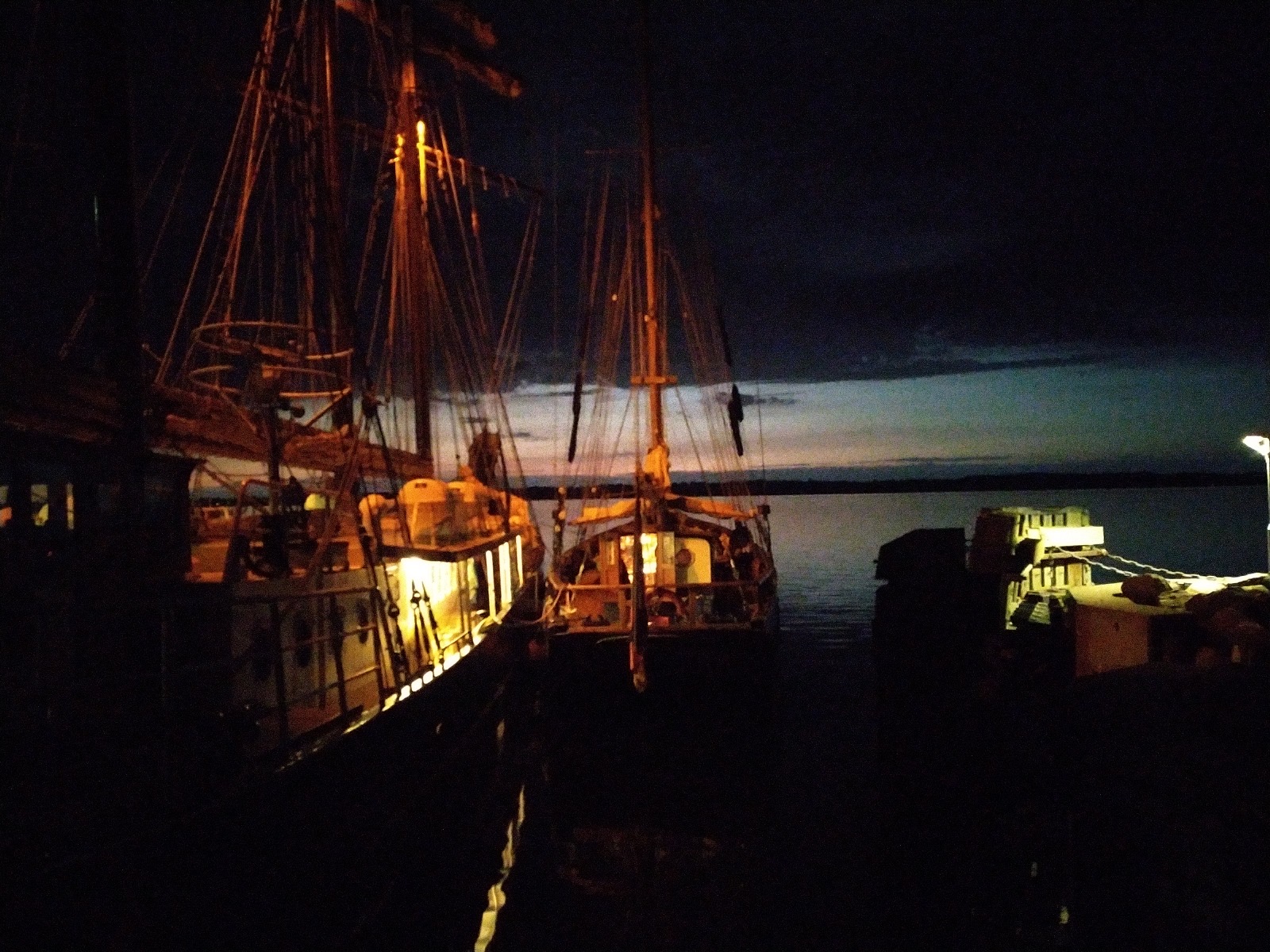 Wir ahnten hier noch nicht, zu welchem Manöver wir durch das Grillen am nächsten Tag „gezwungen“ werden würden. Nachdem Josua und Mia uns eine Tanzvorführung ihrer besten Turniertänze gegeben hatten, spielten wir bei Sonnenuntergang Volleyball und genossen den Blick über die Schiffe mit ihren erleuchteten Fenstern im Hafen bei zunehmender Dunkelheit von unserem Lieblingsplatz aus, dem Klüverbaum über dem Klüvernetz ganz vorne vor dem Bug des Schiffes.