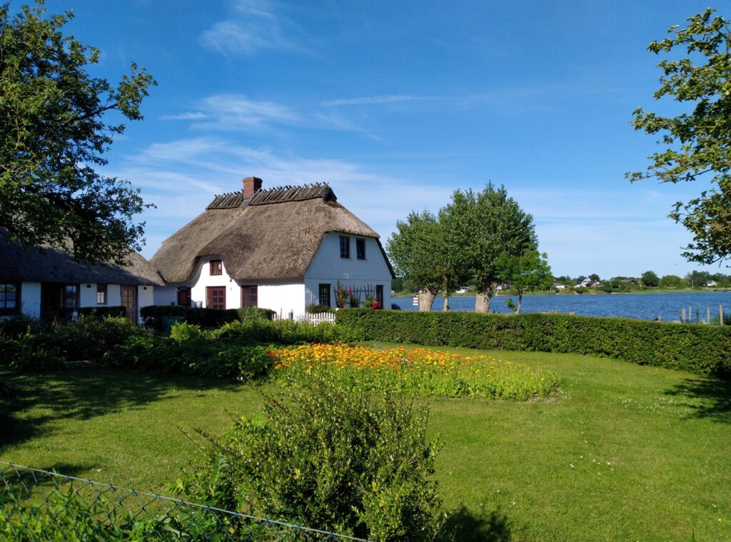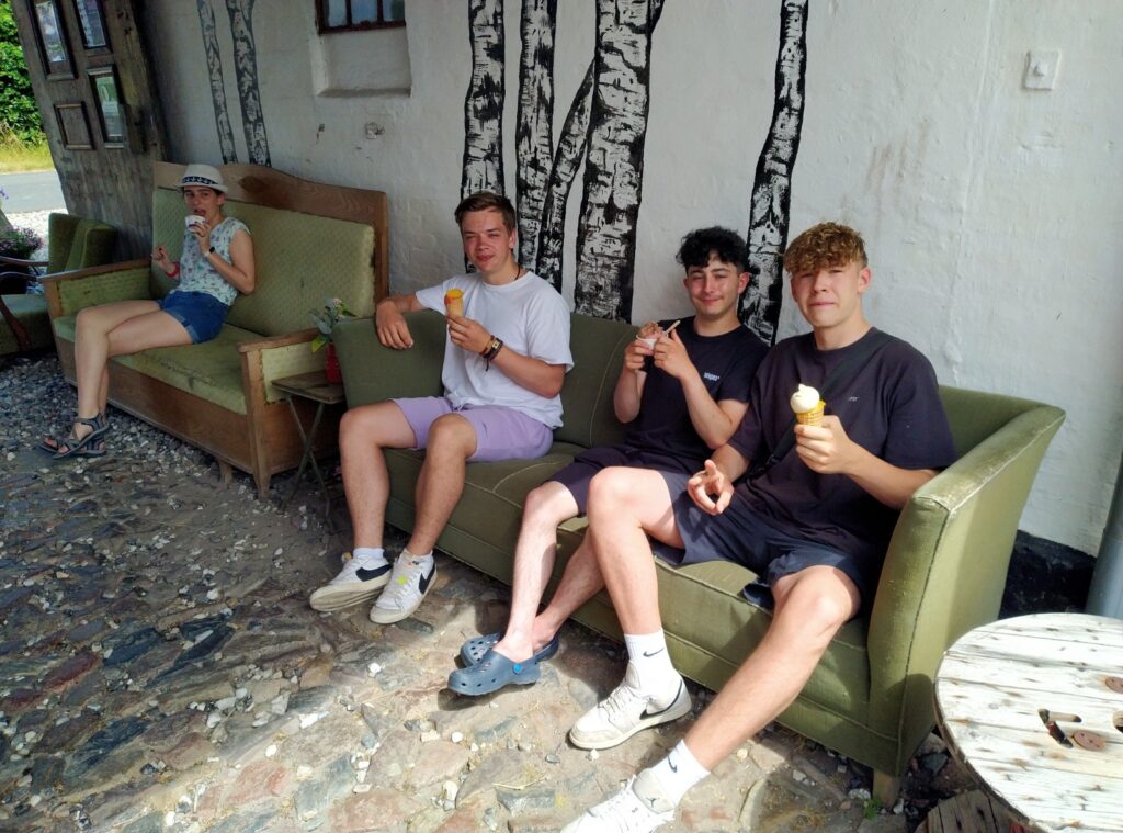 Hier war es so, wie man es sich aus dem Bilderbuch vorstellt: Die kleinen Bauernhäuschen waren umrankt von Rosen, die Dörfer waren geprägt von Steinmauern, Sandwegen, Blumen und Teichen voller quakender Frösche. Hier trafen wir auch auf eine Potsdamer Schulklasse, deren Schiff neben uns angelegt hatte. Sofort waren erste Kontakte geknüpft, aber leider trennten sich die Wege am nächsten Morgen, bis wir die anderen drei Parallelklassen später in Kappeln treffen sollten.