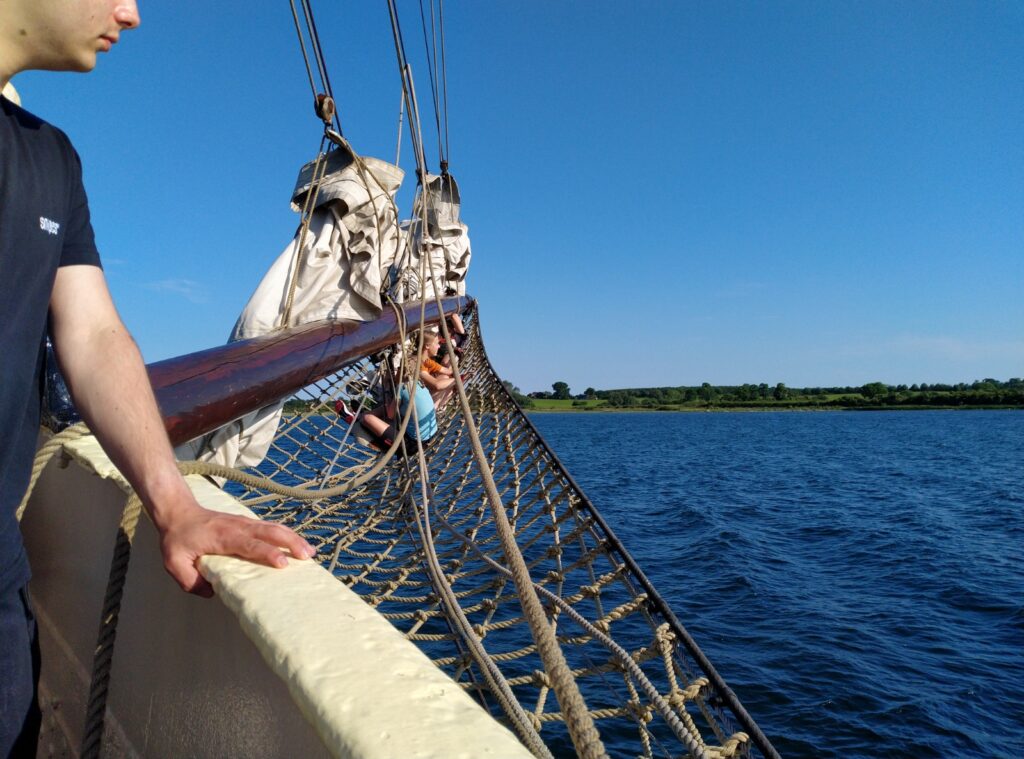 Wir haben gelernt, für fast 30 Personen zu kochen und alle Mahlzeiten zuzubereiten, konnten den Alltag für einige Momente vergesssen und die Seele baumeln lassen. Besonders interessant war es, hinten am Heck dem Kapitän beim Steuern zuzuschauen und auch selbst das Steuer in die Hand zu nehmen. Vom Klüverbaum ganz vorne noch vor dem Bug des Schiffes aus hatten wir eine fantastische Sicht von vorne und oben auf das komplette Schiff, während unter uns das Klüvernetz über der Ostsee hing.