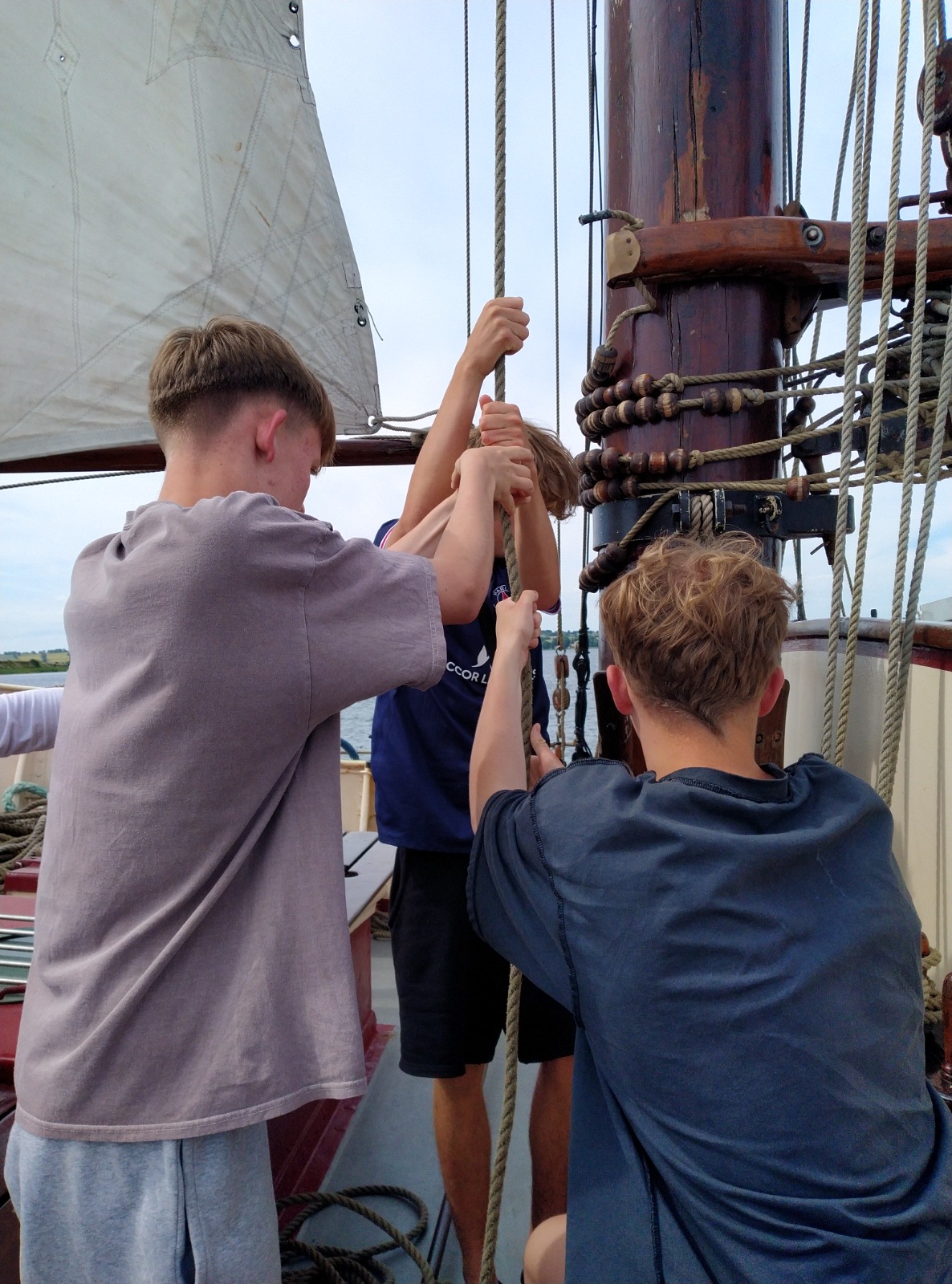 Wir bedanken uns bei der Crew der Luciana für die tolle Zeit und ich wünsche meiner Segeltruppe schöne Sommerferien und freue mich auf das nächste Jahr, wenn wir wieder in die dänische Südsee aufbrechen – dieses Mal mit der Swaensborgh, die in Kappeln neben uns geankert hat und wodurch die zukünftige Segeltruppe schon einmal einen kleinen Einblick erhalten konnte – und mit Vorfreude in das nächste Schuljahr starten kann.