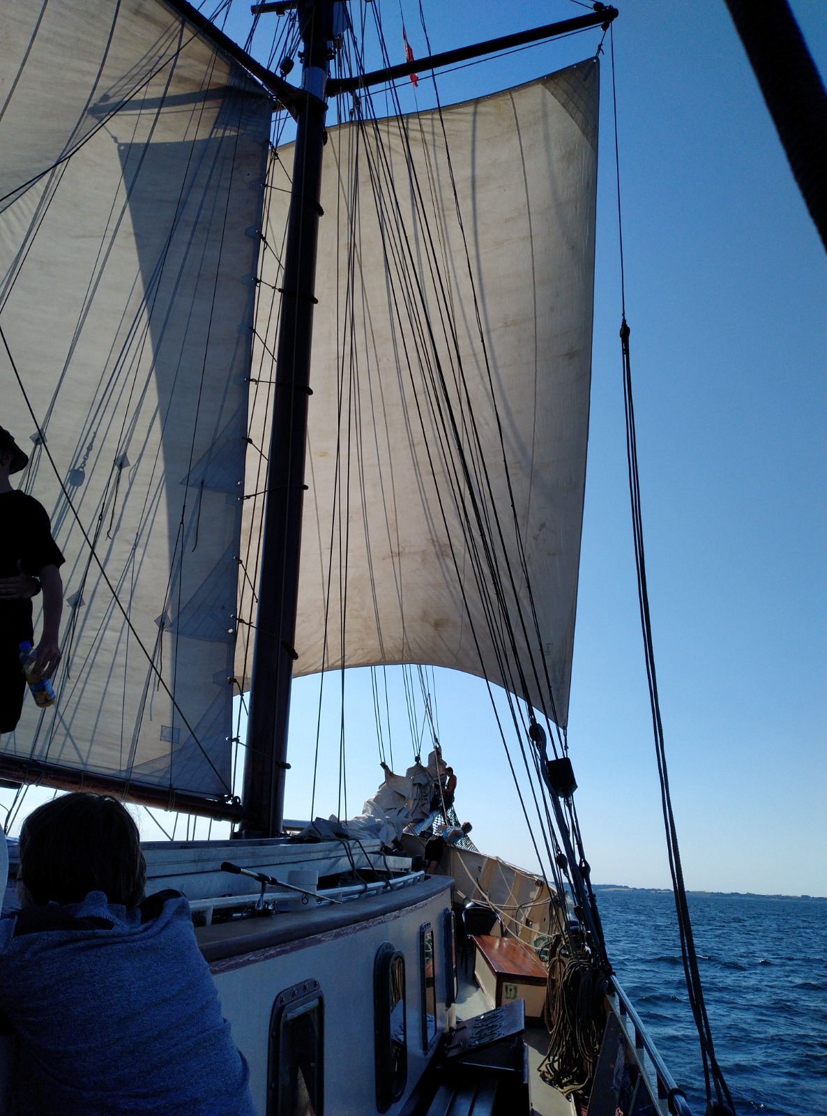 Am vorletzten Tag segelten wir gerade aus südlich zurück nach Schleswig-Holstein und genossen die Fahrt durch die Mündung der Schlei nach Kappeln, erkundeten den Ort und genossen den letzten Abend, bevor es am Freitag unter teilweisem Regen wieder zurück nach Kiel ging, wo wir hundemüde ankamen.