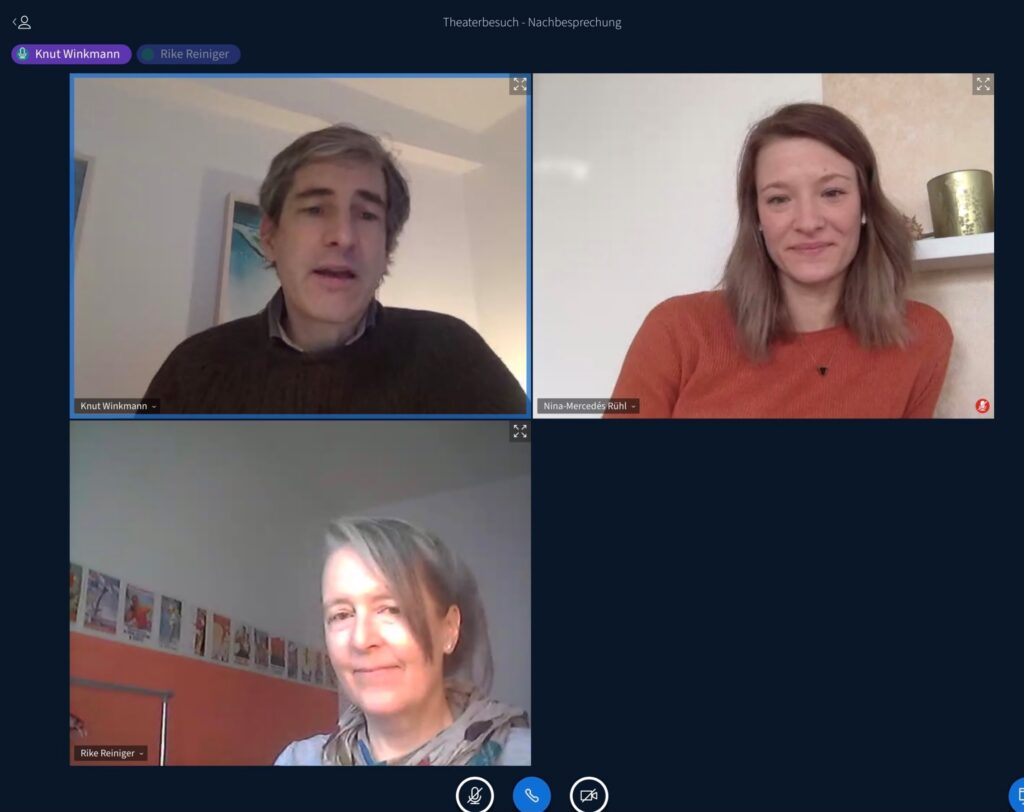 Am Freitag, den 26.02.2021, trafen sich die Schülerinnen und Schüler der Klasse Ea mit Frau Eggers zu einer Online-Besprechung mit Nina-Mercedes Rühl, der Protagonistin des Theaterstücks ,,Sophie Scholl‘‘, in einer Videokonferenz. Das Stück thematisiert das Leben der Widerstandskämpferin gegen das Regime des Nationalsozialismus, das wir vorher als Online-Variante angeschaut hatten. Rike Reiniger, die Autorin des Stückes, und Knut Winkmann, Theaterpädagoge des Theaters Lübeck, nahmen ebenfalls an der Besprechung teil.