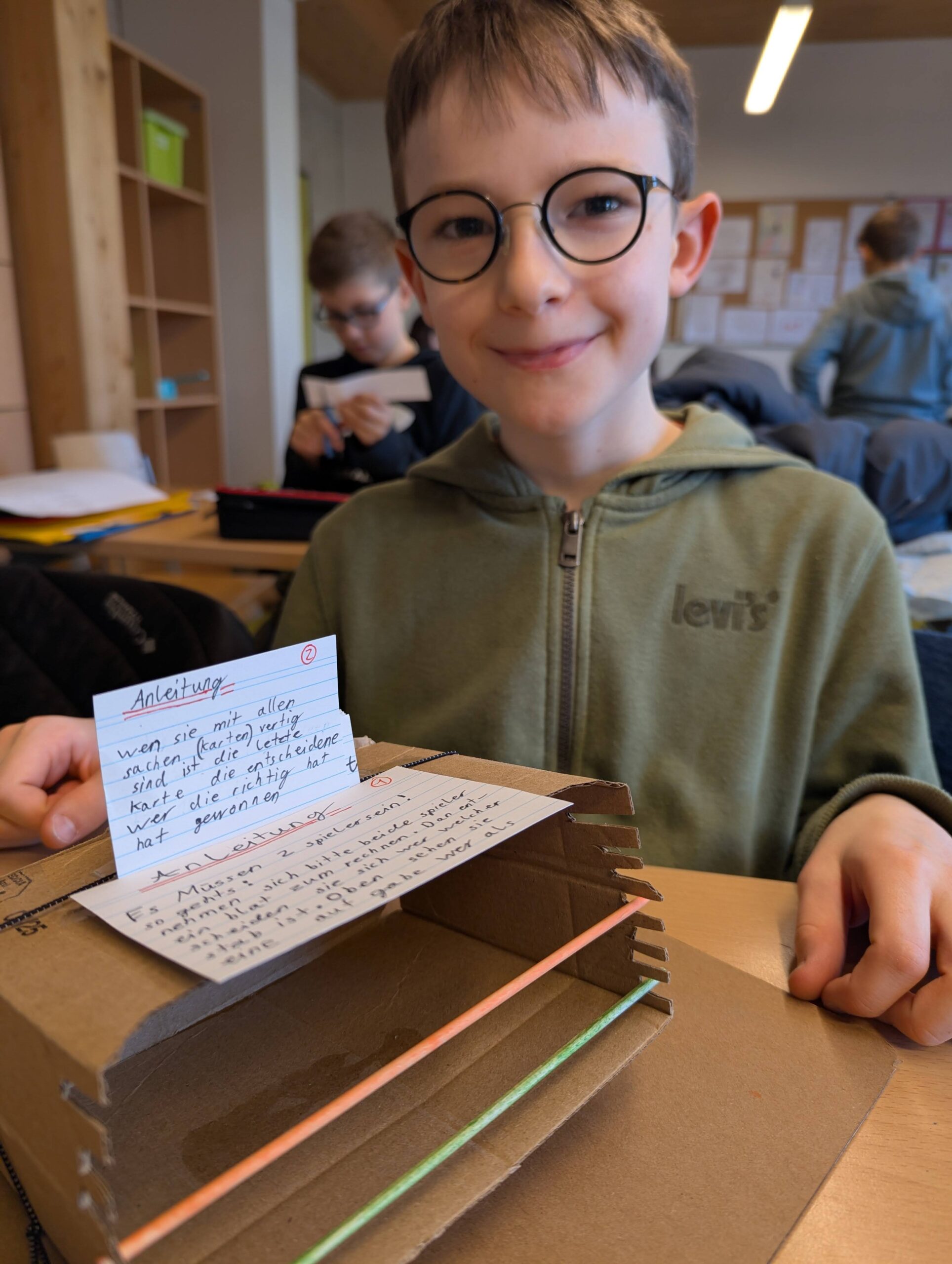 Nicht nur die Entwicklung der Spielidee und deren Umsetzung lag in den Händen der 5-Klässler, auch die Aufgaben samt Lösungen und eine verständliche Spielanleitung mussten selbst verfasst werden – schließlich sollen auch die Mitschüler:innen Spaß an den verschiedenen Spielen haben.