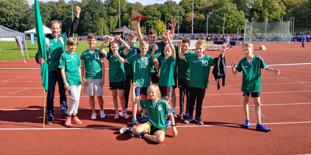 Bei den Jungen aus den Orientierungsstufen war unsere Staffel bei der Vorrunde ganz vorne mit dabei und machte den 1. Platz. In der Hauptrunde hatten wir etwas weniger Glück, aber belegten trotzdem einen hervorragenden 3. Platz. Wir sind sehr stolz, dass unser Mitschüler Yusef dabei war. Und auch noch mal von uns einen herzlichen Glückwunsch! ( Johanna)