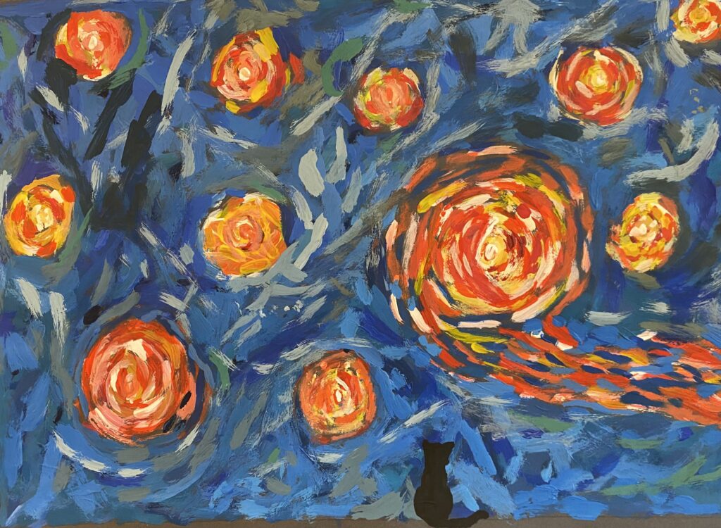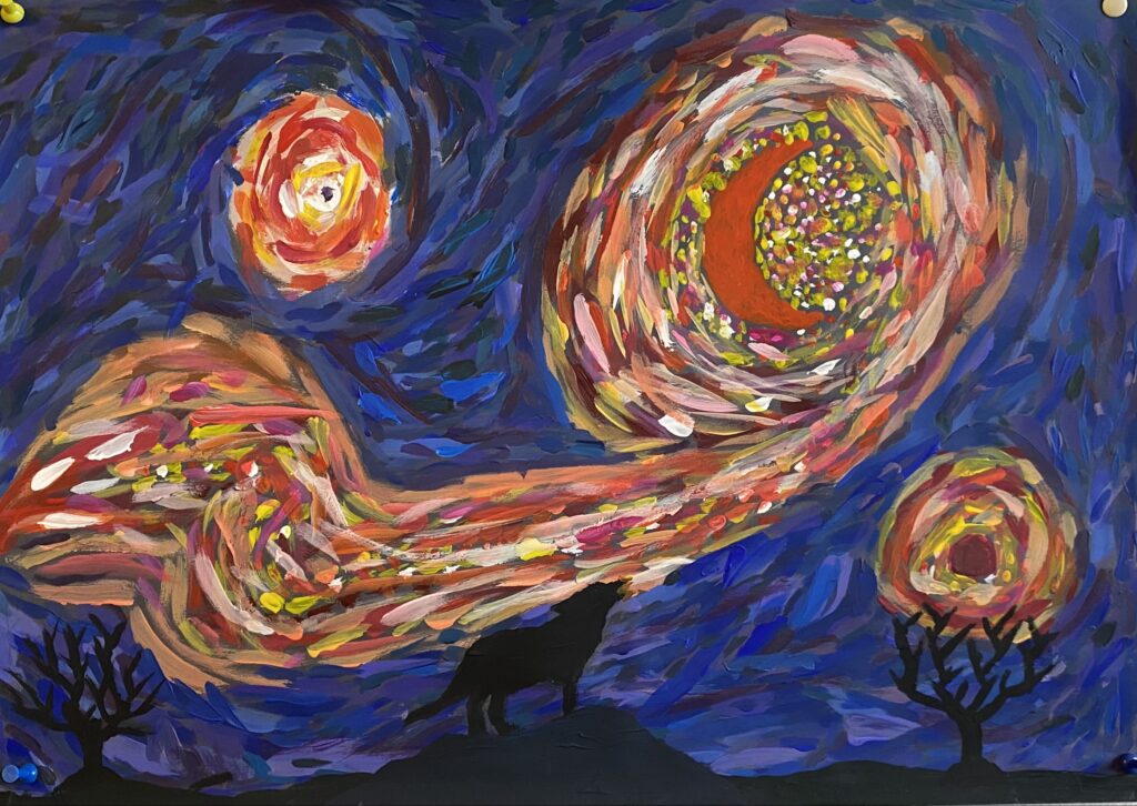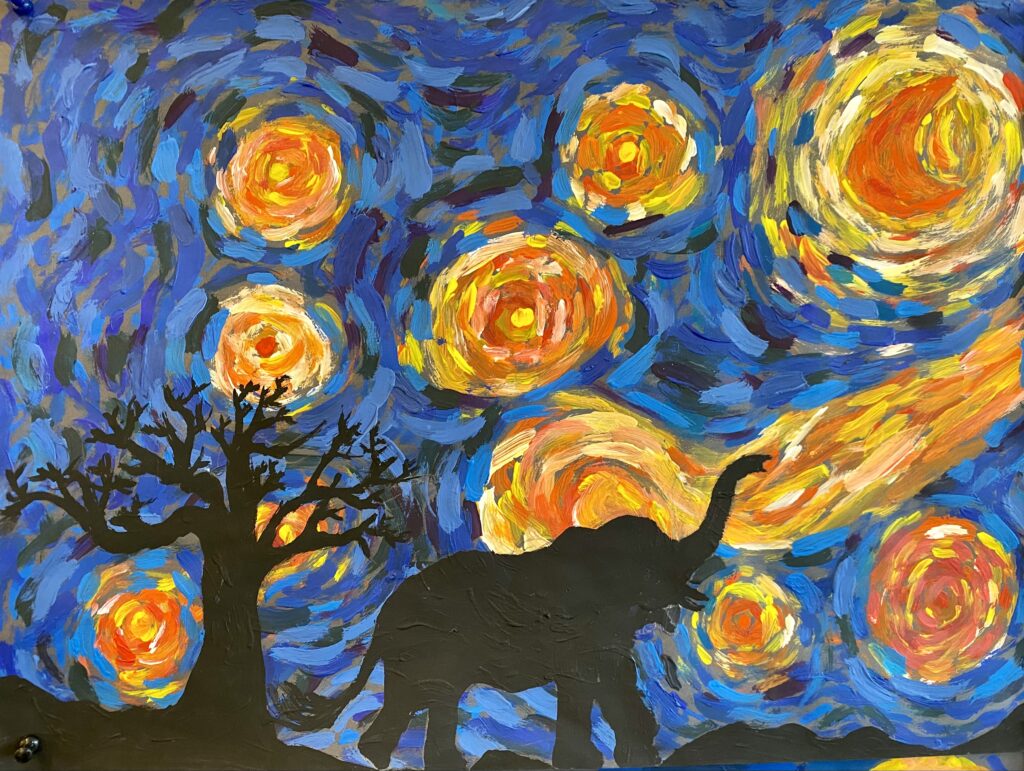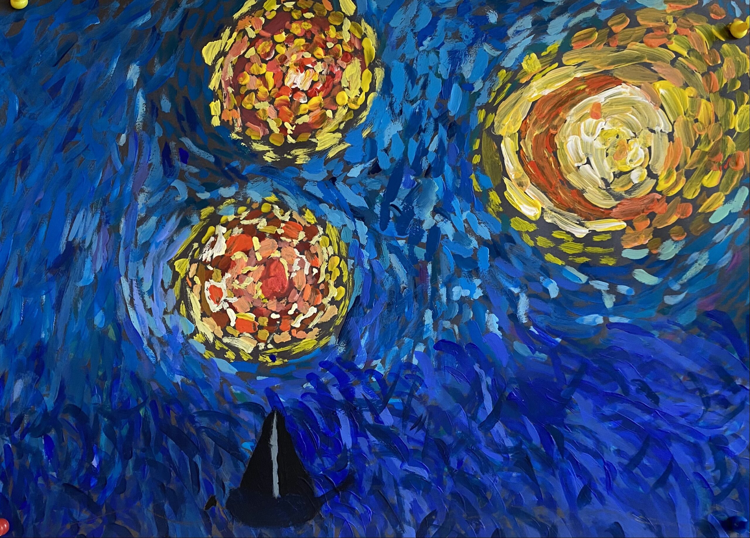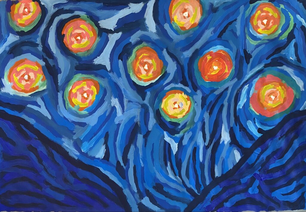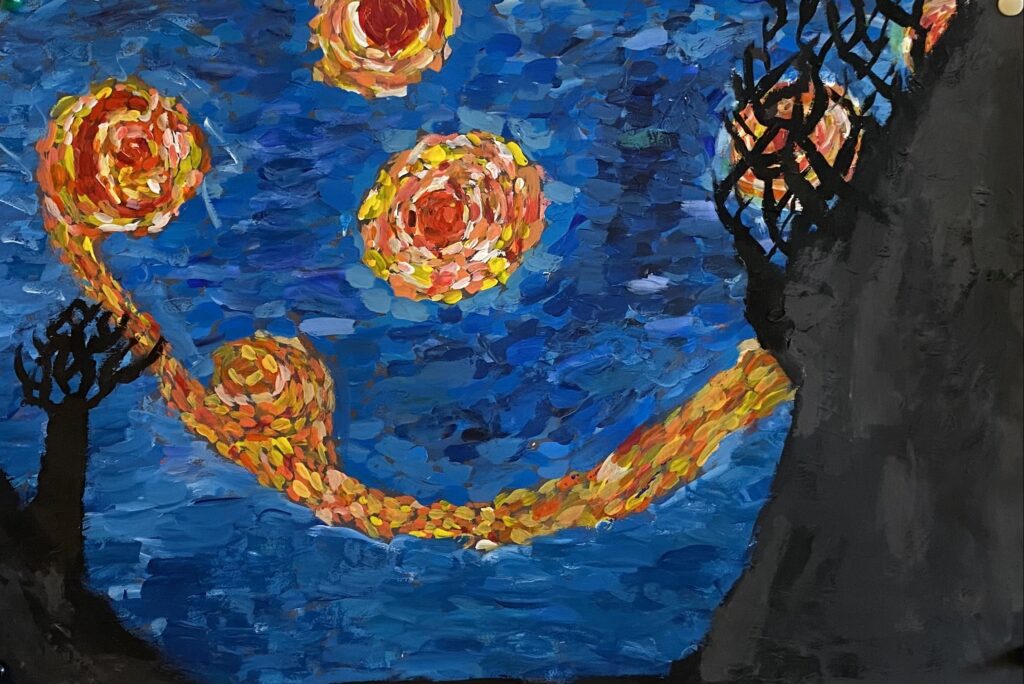 Die SchülerInnen der 6c und der 6d setzten sich im Kunstunterricht bei Frau Meyer mit der Sternennacht „La nuit étoilée“  von van Gogh auseinander.