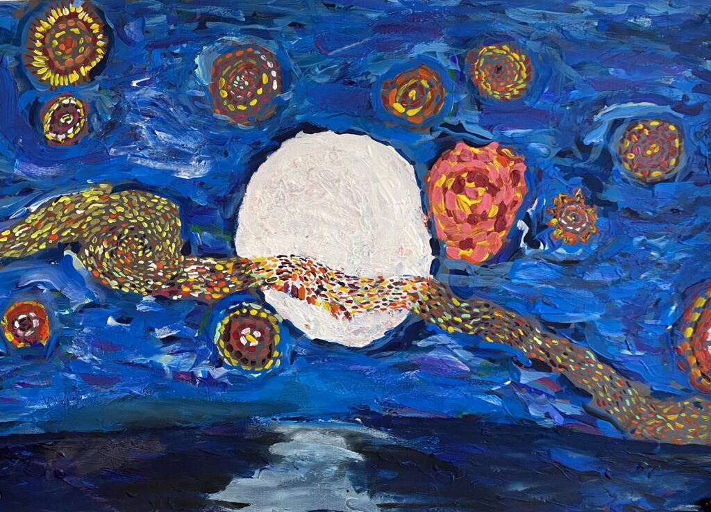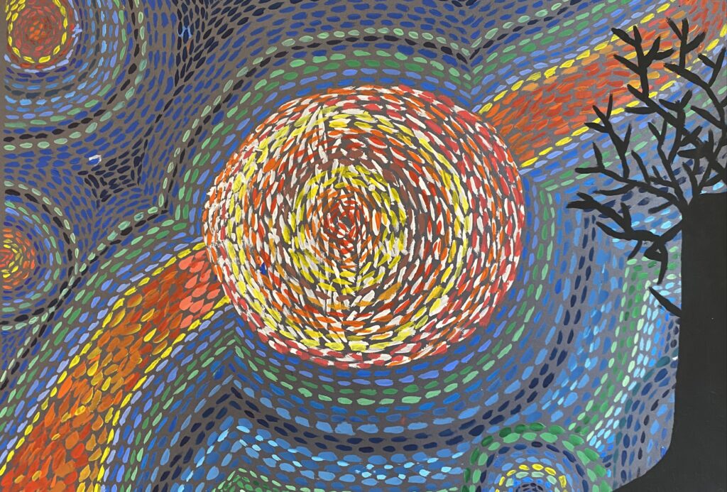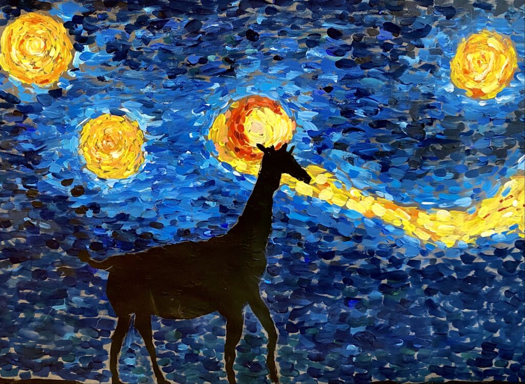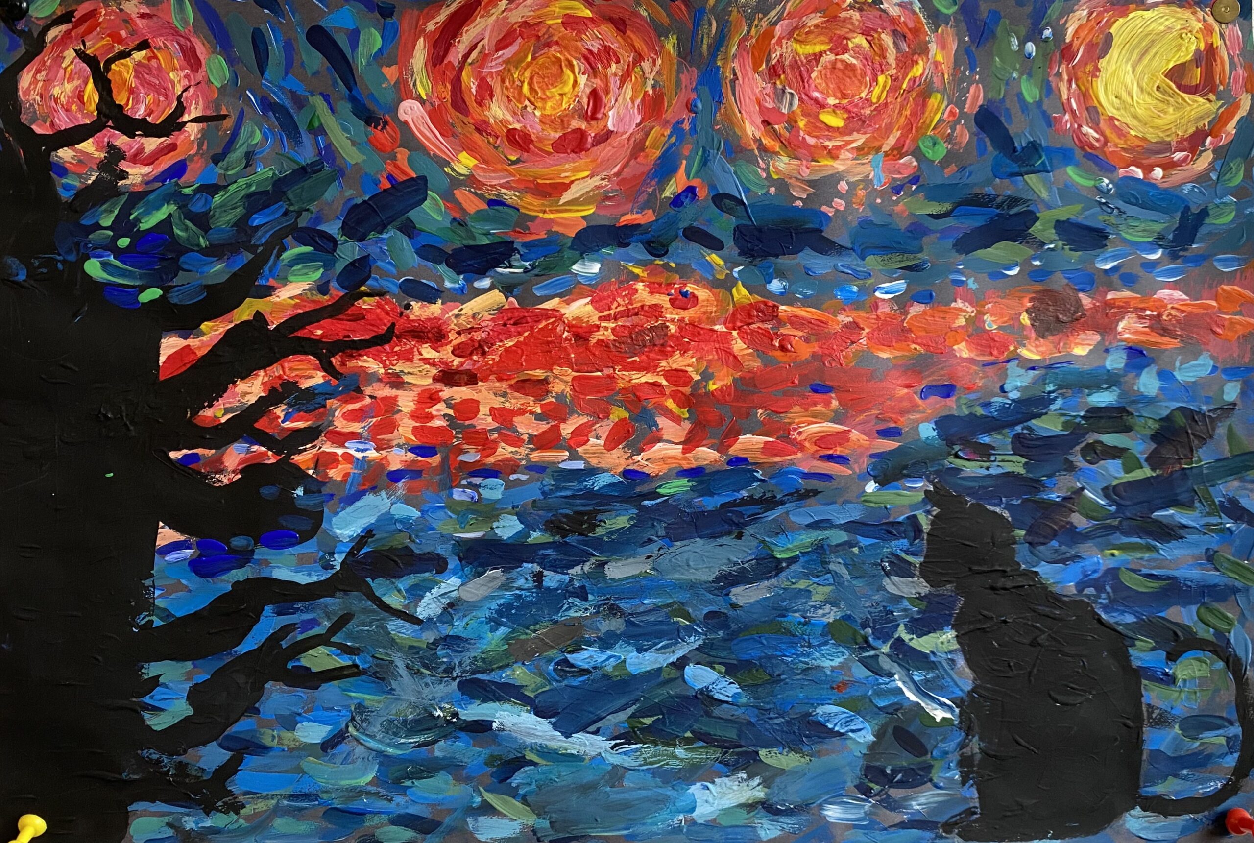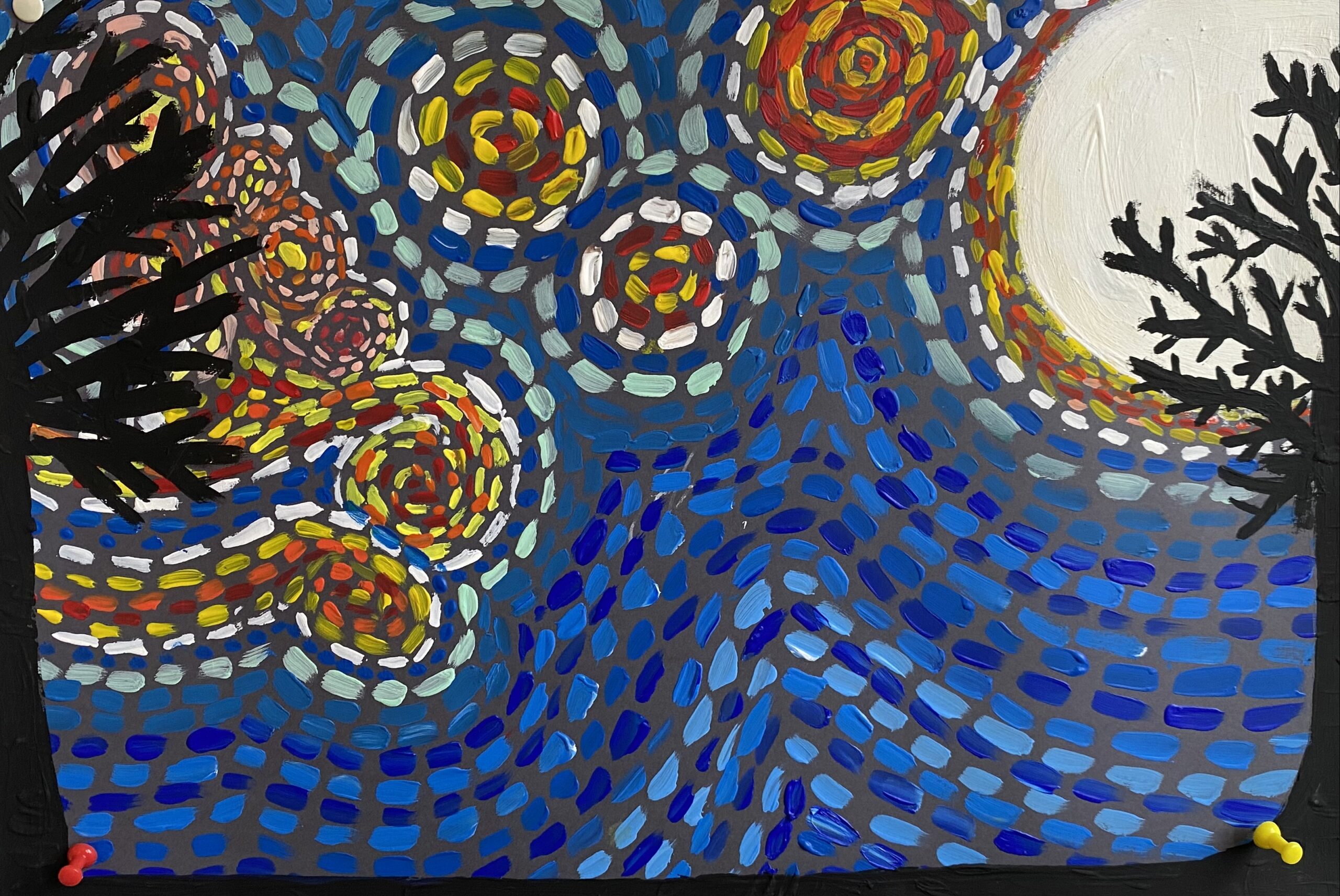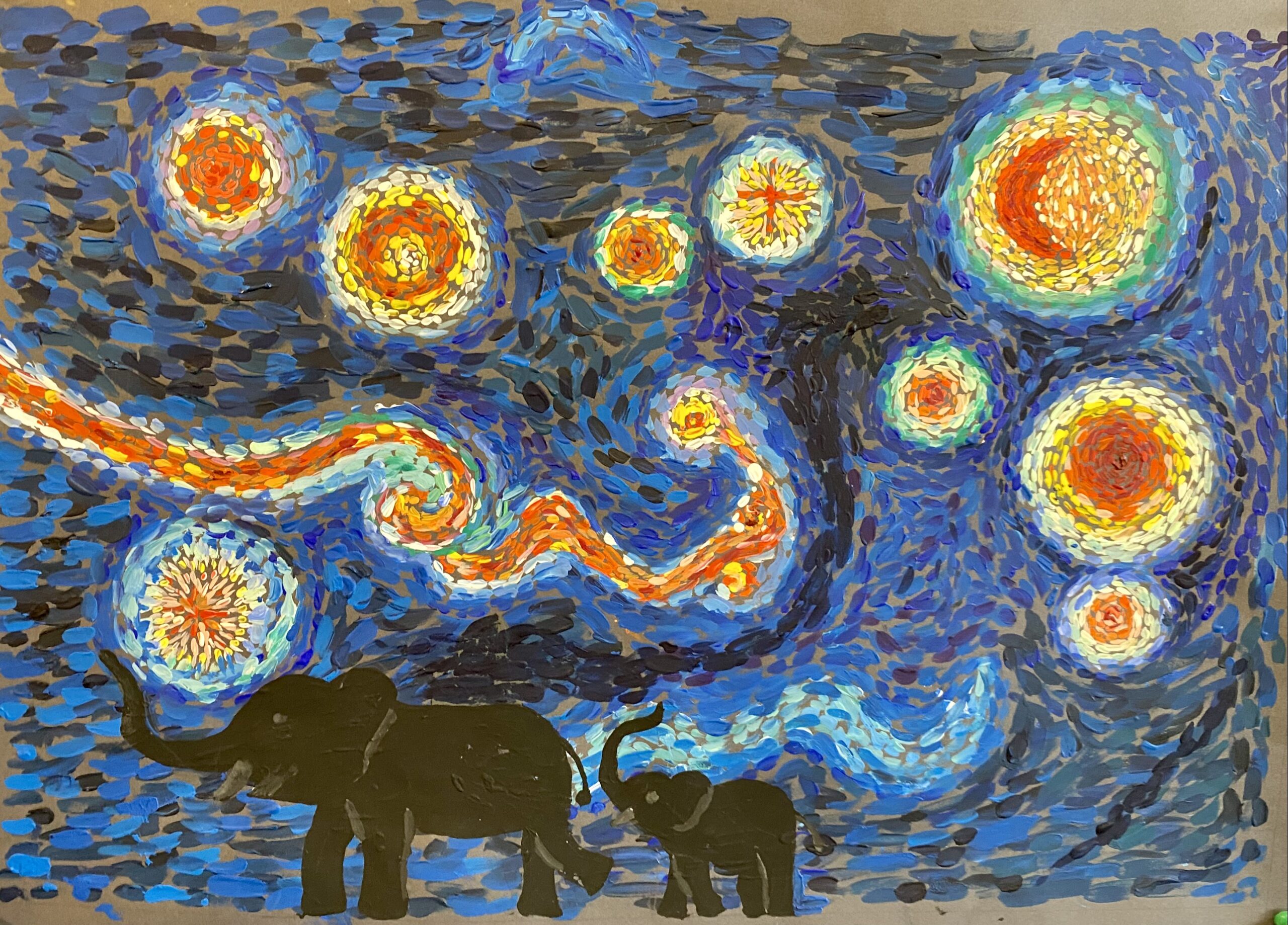 Die SchülerInnen der 6c und der 6d setzten sich im Kunstunterricht bei Frau Meyer mit der Sternennacht „La nuit étoilée“  von van Gogh auseinander.
