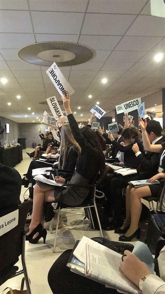 Zu einer solchen Konferenz gehört auch immer eine ordentliche Vorbereitung, weshalb wir uns im Vorfeld in der Schule trafen und die Positionen des uns zugewiesenen Landes (Uganda) zu den jeweiligen Themen unserer Komitees erarbeiteten.