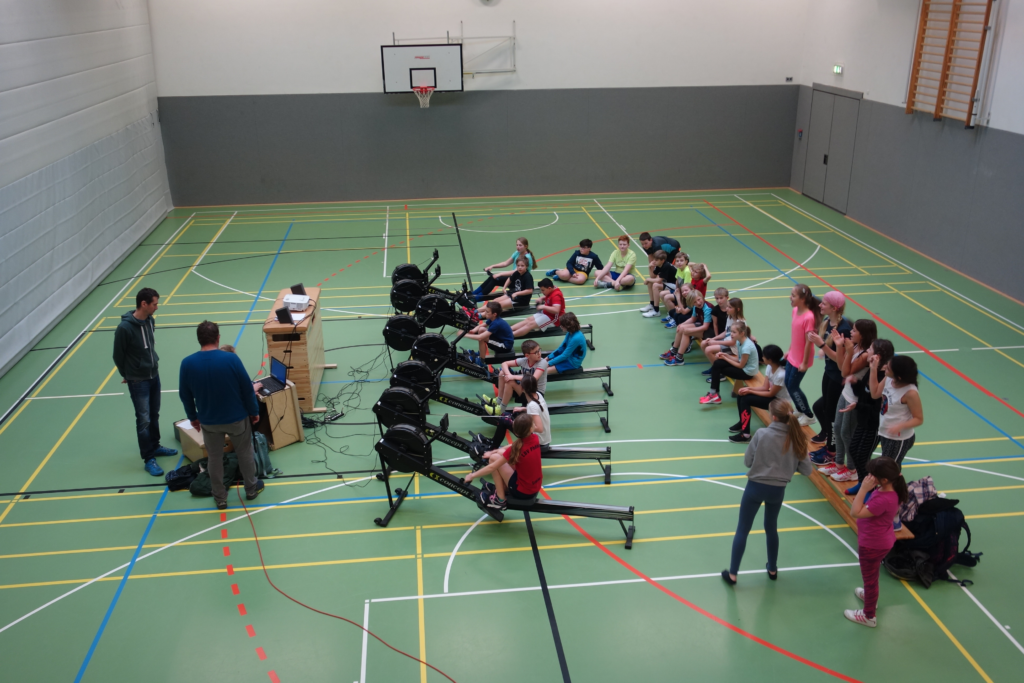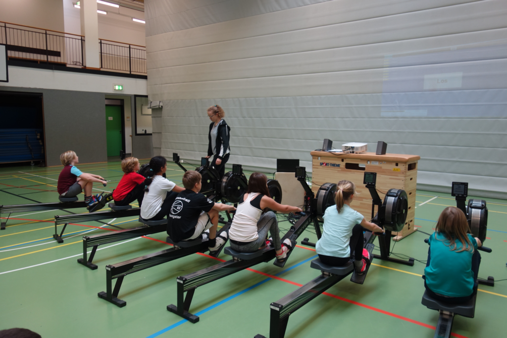 Zum zehnten Mal hat der Deutsche Ruderverband mit der Aktion „Rudersport in der Schule – gemeinsam noch stärker“ alle 5. und 6. Klassen deutschlandweit zum Ergometer-Wettbewerb aufgerufen. Wie auch schon in den letzten zwei Jahren kamen die Ergometer direkt in die Halle zu uns.