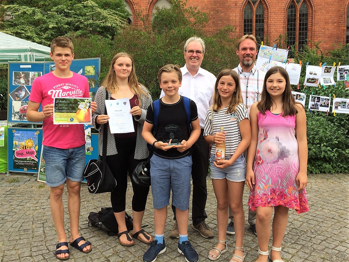 An der Preisverleihung, die am Sonntag, den 10.6. im Rahmen des Nachhaltigkeitsmarktes im Domhof stattfand, nahmen neben dem Teamleiter Herrn Pribnow auch Schüler und Kollegen der bestplatzierten Klassen unserer Schule teil.