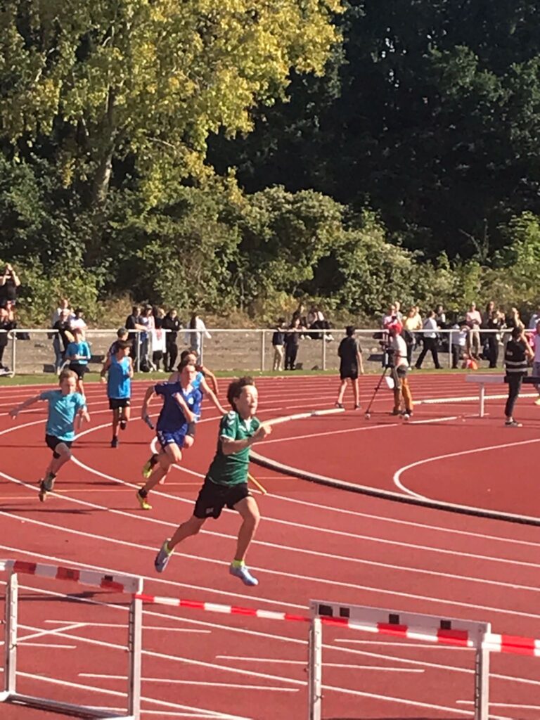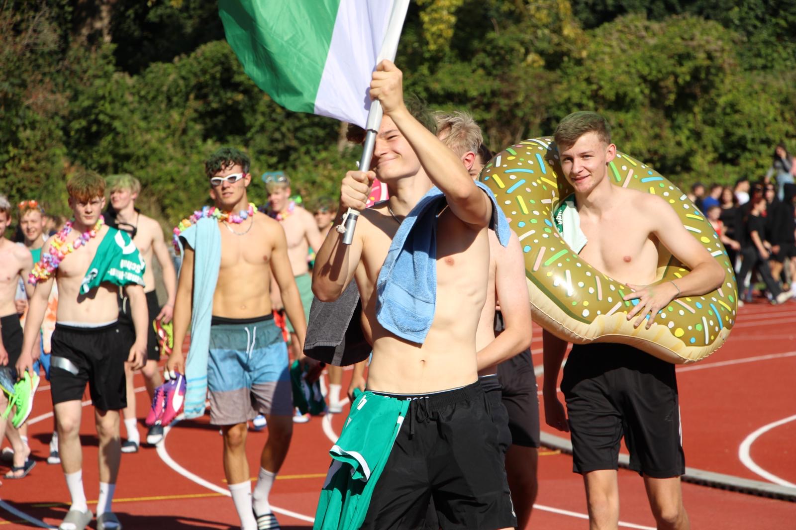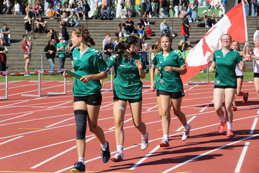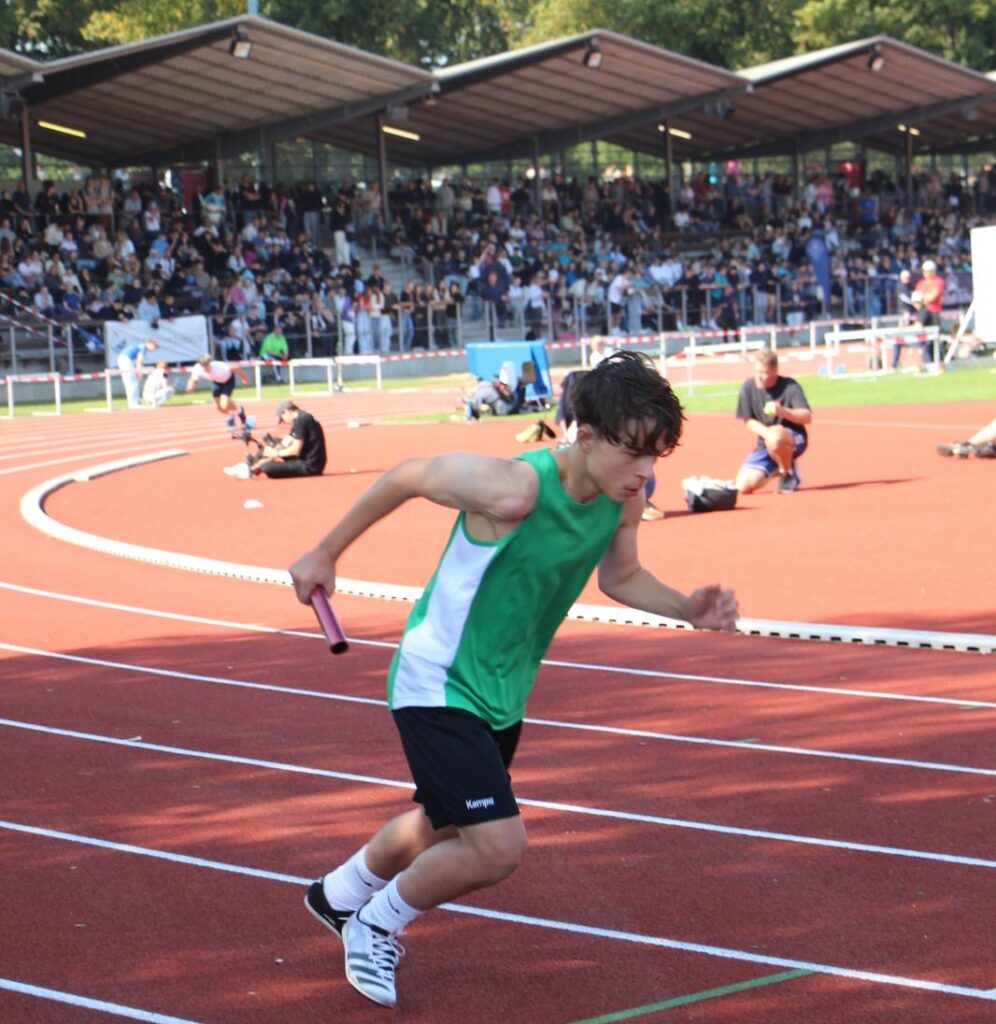 Wir schreiben Freitag, den 20.9.24. Die Sonne brennt heiß auf die Köpfe der Schüler aller Lübecker Schulen. Eine Menge aus grün-weiß geschminkten und gekleideten Jugendlichen und Lehrkräften wartet gespannt in der TMS-Fankurve. Kein Windstoß geht, alle halten den Atem an und starren gebannt auf die Bahnen. Da ertönt das Startsignal. Die Läuferinnen und Läufer schießen förmlich nach vorn und sprinten los. Das Publikum tobt. „TMS, TMS!“, schallt es aus Hunderten von Kehlen.