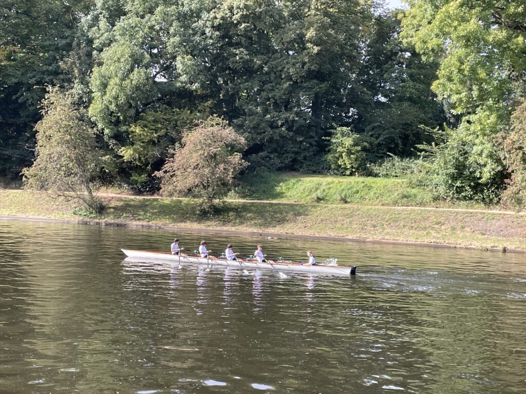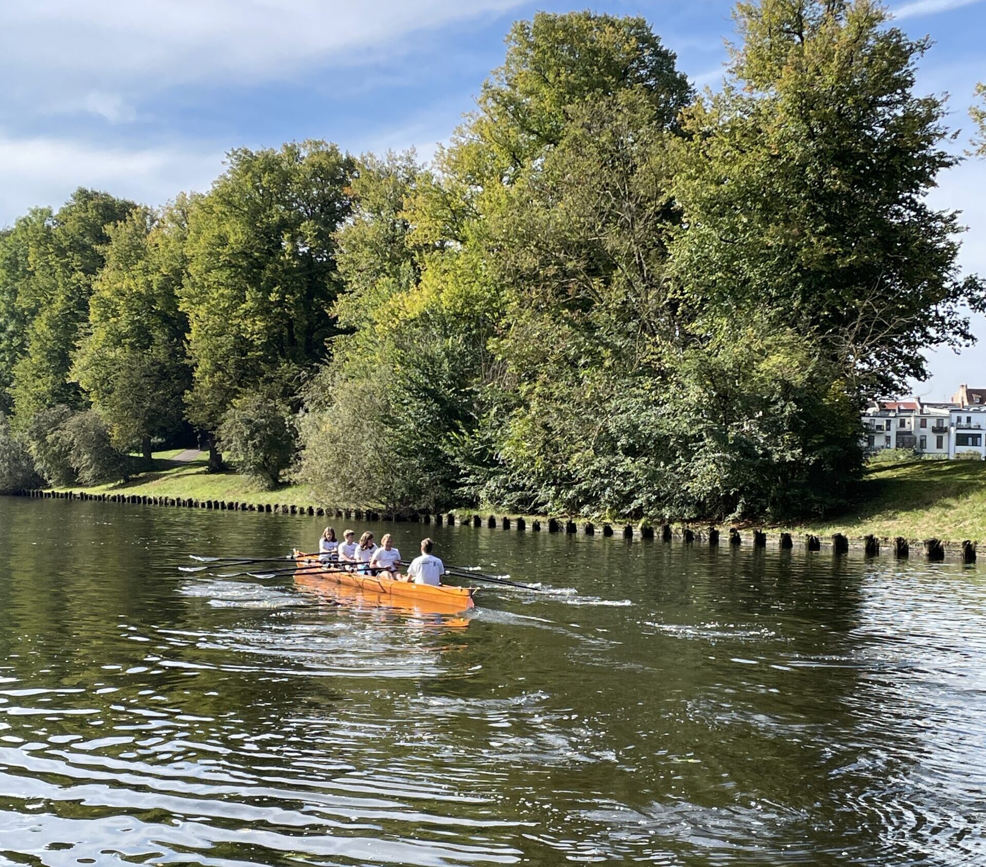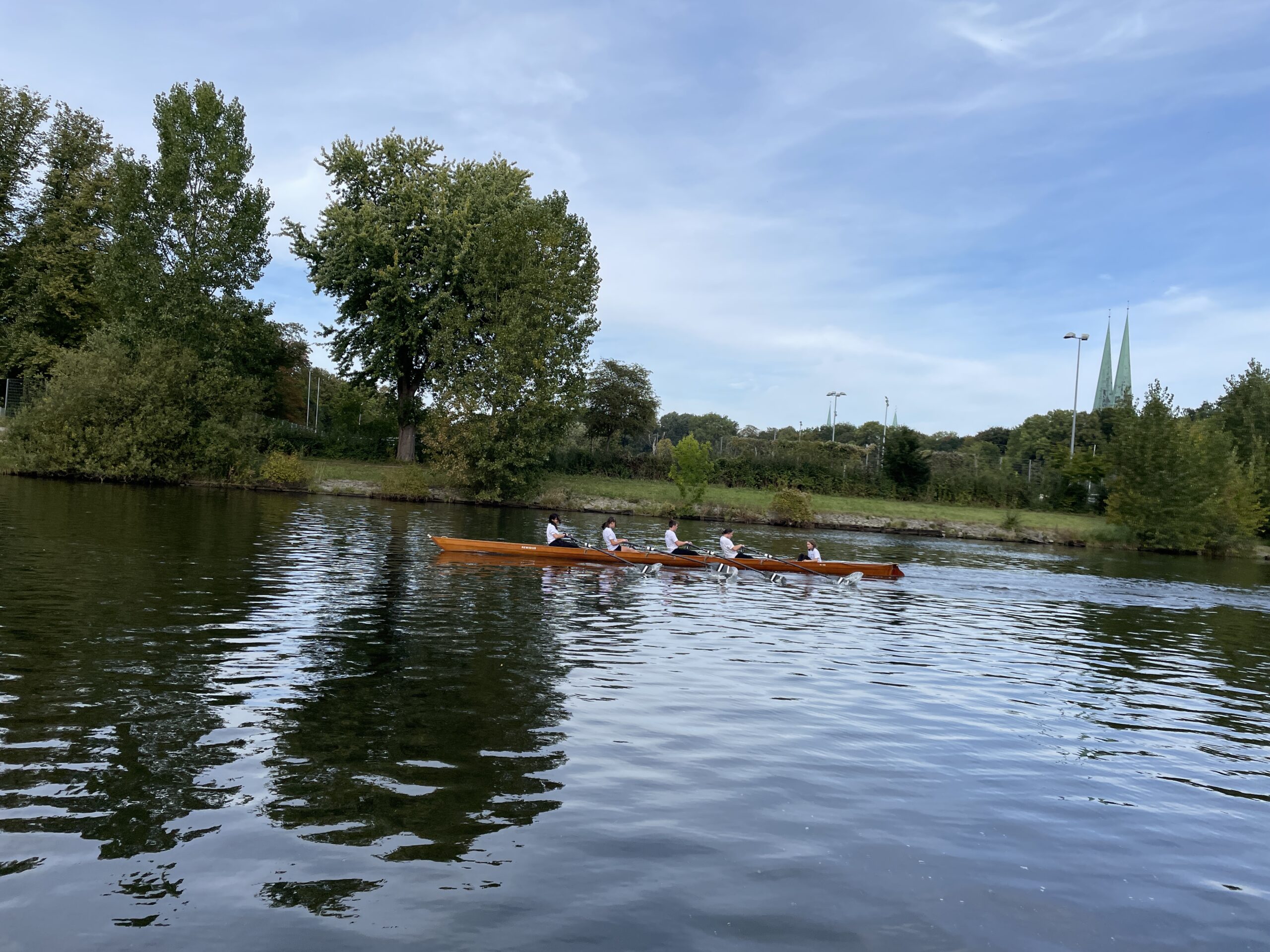 Für unsere Anfänger Lotta, Julius und Ben war es die erste Regatta und entsprechend aufgeregt war die Mannschaft. Ergänzt durch Nike, die schon an der internen Regatta teilgenommen hatte, und unserem erfahrenen Steuermann Lucas erreichte die Mannschaft den 1. Platz vor dem Mixed-Gig-Doppelvierer mit Steuermann der Ernestinenschule.
