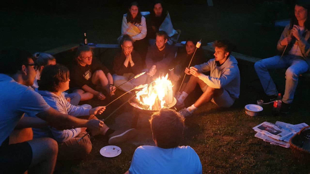 Nach einem kurzen überraschenden Besuch von Frau Petzold und Frau Hohenfeld (vielen Dank noch einmal für die Mitorganisation der Aula!) mit einer kleinen Foto-Session, haben wir den Abend ganz entspannt am Lagerfeuer im Garten von der Gemeinde St. Birgitta mit Stockbrot, Marshmallows und netten Getränken verbracht. Ein paar Runden Werwolf und Musik durften natürlich auch nicht fehlen.