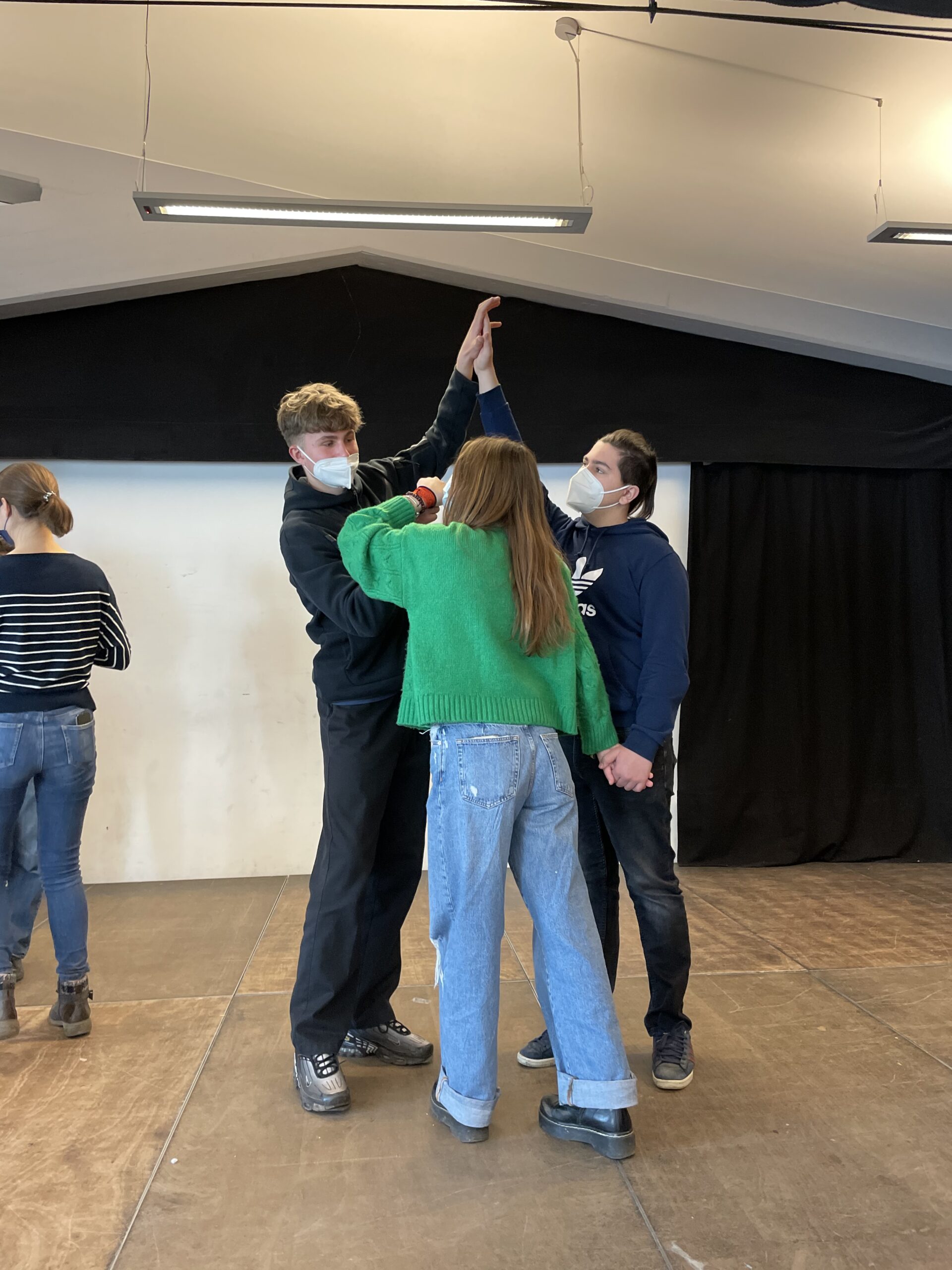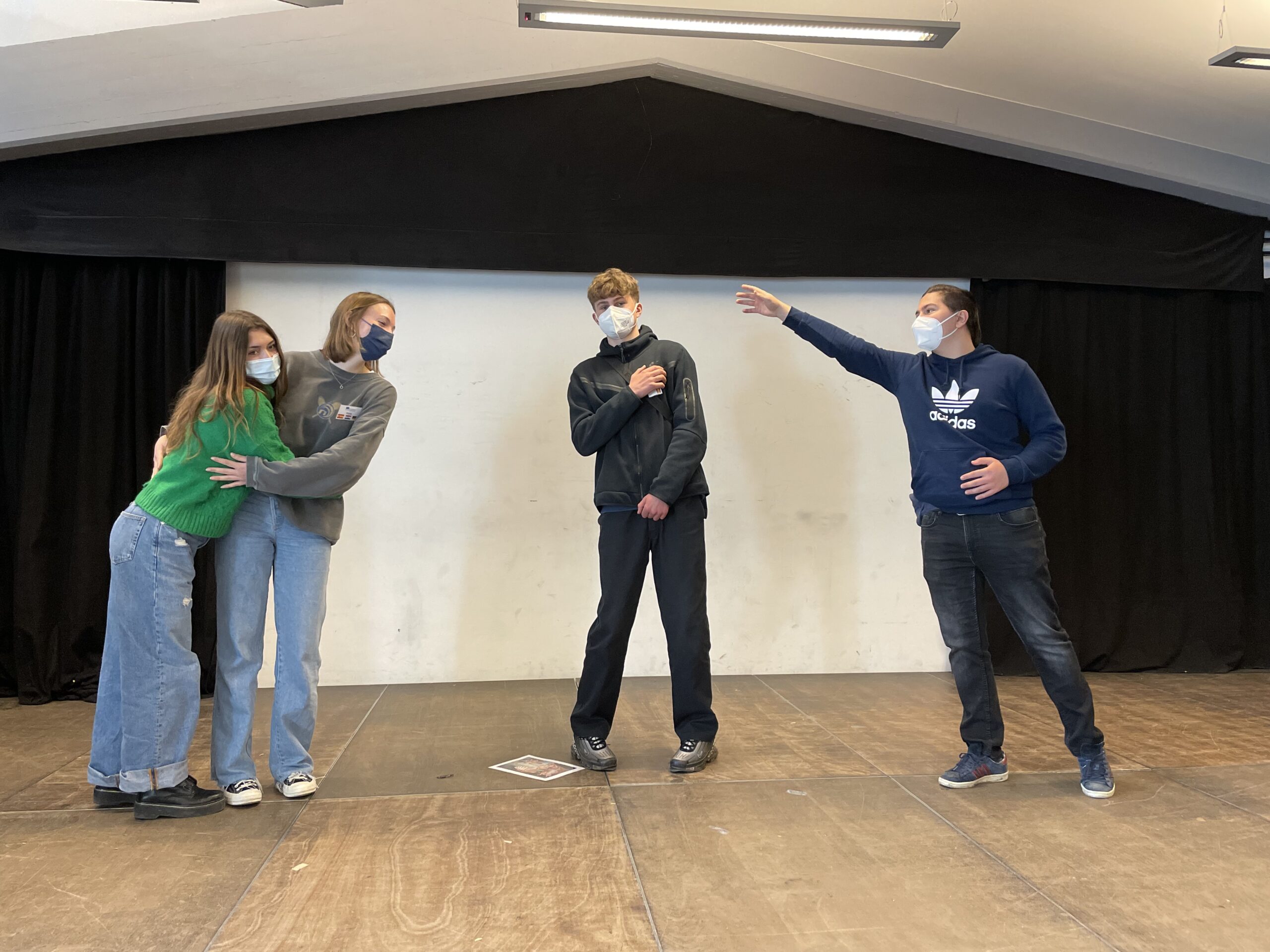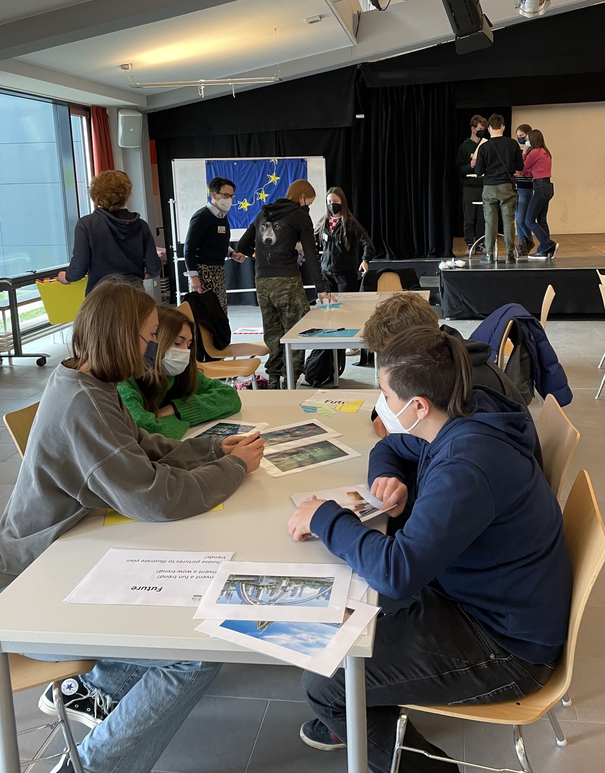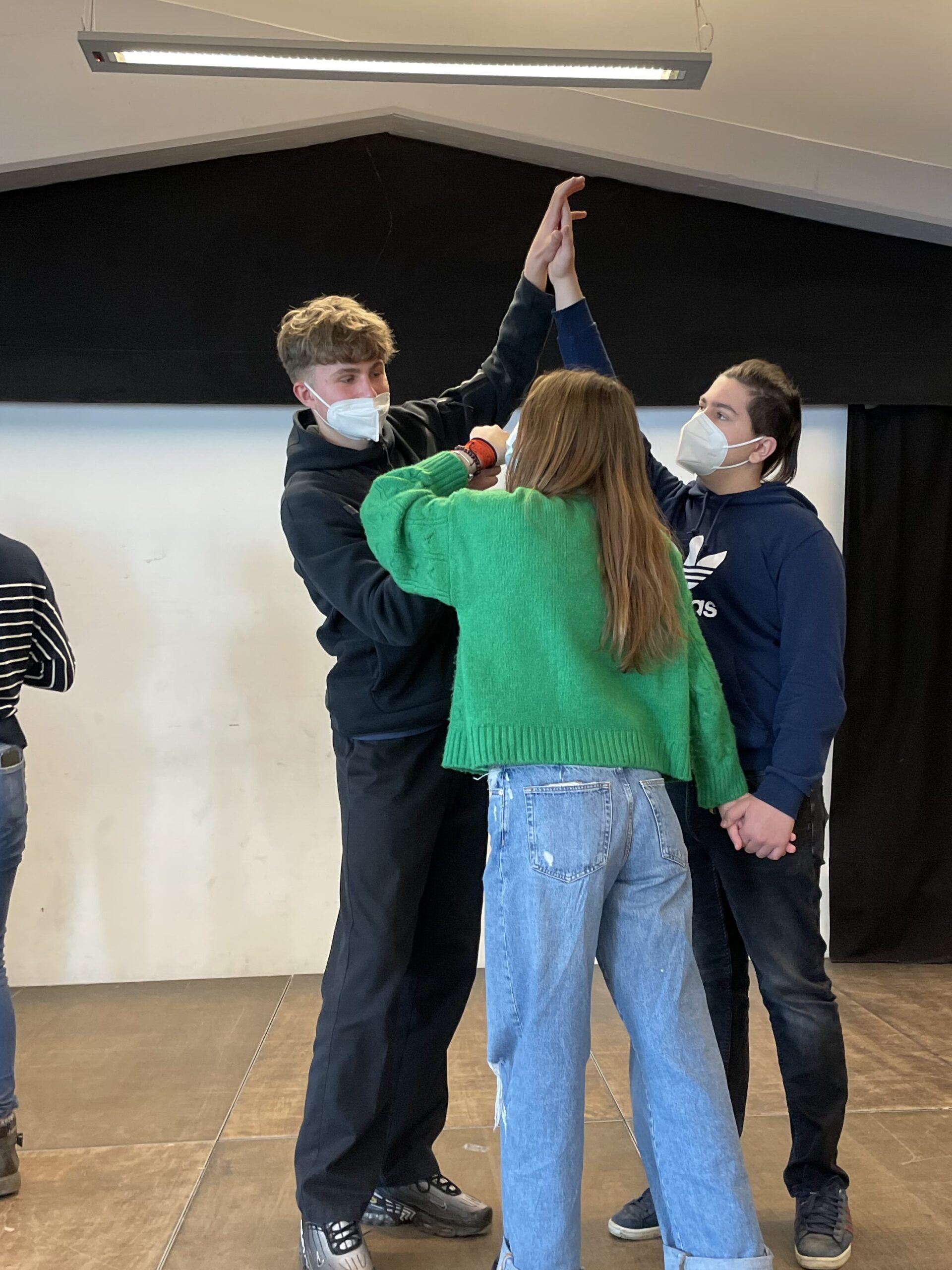 Anschließend beschäftigten sich alle mit unterschiedlichen europäischer Epochen von der Antike bis heute. Sie ordneten z.B. Bilder griechischen Mythen zu, legten Puzzles mittelalterlicher Kathedralen aus den drei Ländern und stellten Renaissancegemälde als lebende Bilder nach. Botticellis „Drei Grazien“ und „Geburt der Venus“ und Leonardos Studie „Vitruvianischer Mensch“ nachgestellt: