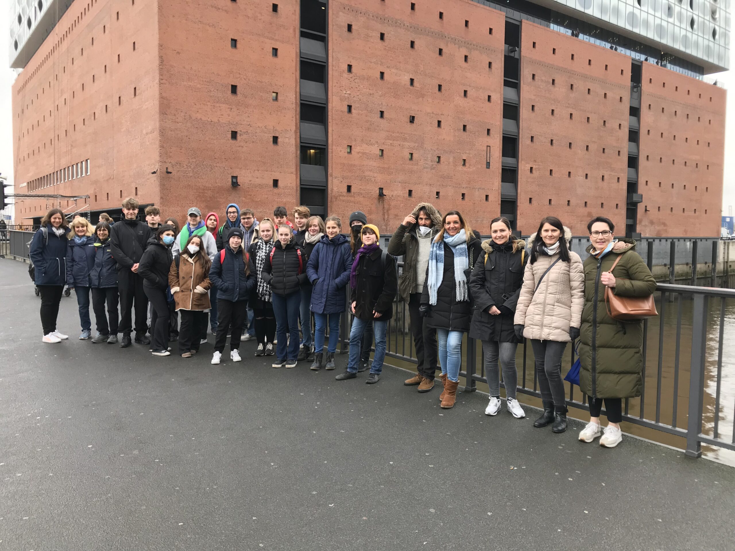 Zunächst ging es auf die Aussichtsplattform der Elbphilharmonie, die auf einem ehemaligen Speicher errichtet worden ist und als neues Wahrzeichen Hamburgs gilt.