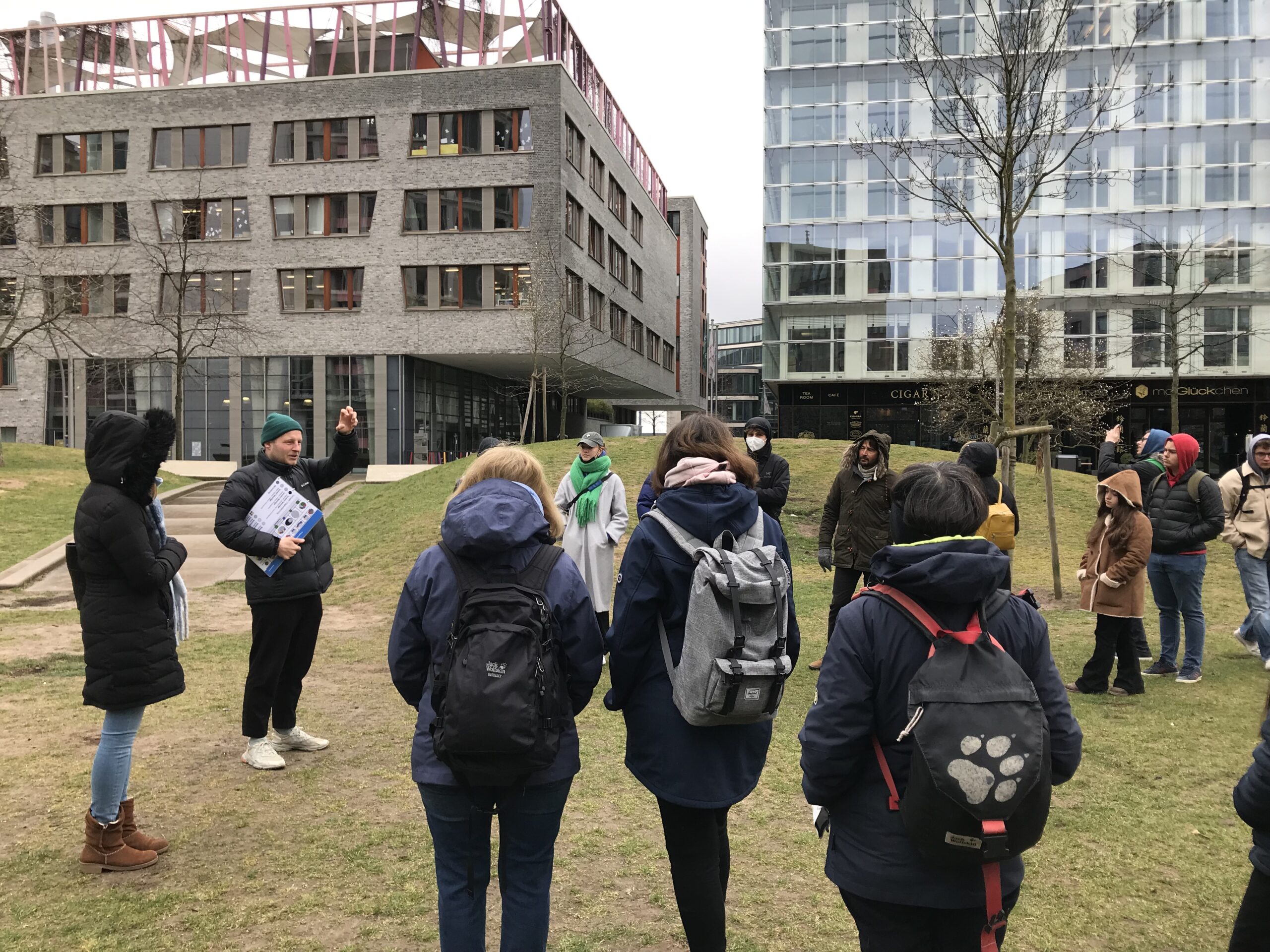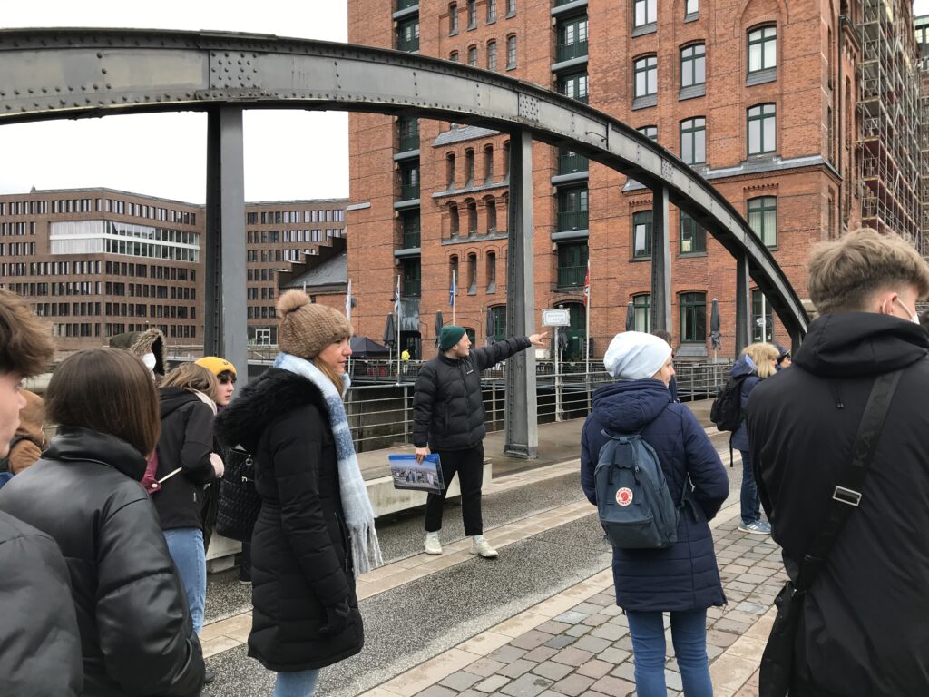 An diesem Tag ging es nach Hamburg. Auf einem geführten Rundgang durch die Hafencity lernten die Teilnehmer etwas über energieeffizientes Bauen, Hochwasserschutz und eine Stadtentwicklung, die Wohnen und Arbeiten verbindet und eine soziale Durchmischung der Quartiere anstrebt. Die moderne Architektur bildete einen gelungenen Kontrast zu den mittelalterlichen Bauten in Lübeck, mit denen sich die Schüler am Vortag auseinander gesetzt hatten. Interessant war, dass Backstein als Material sowohl hier wie dort, damals und heute eingesetzt worden ist.