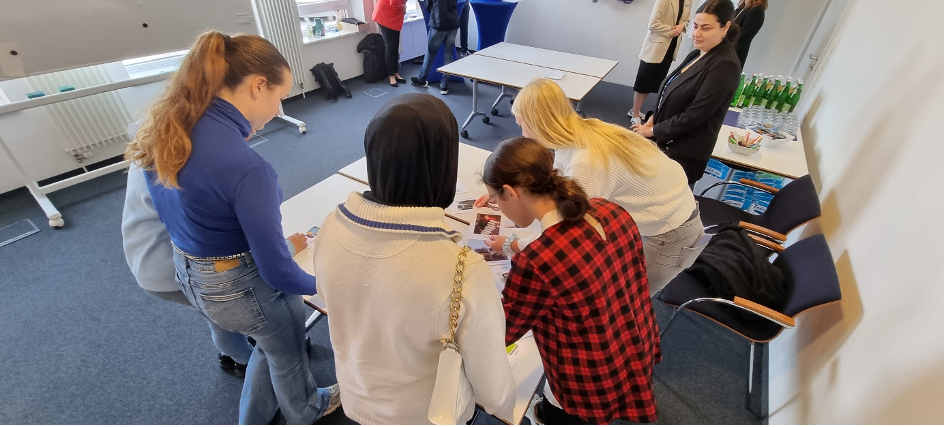 Schülerinnen versuchen, bei der IHK im Planspiel ein Event zu planen.