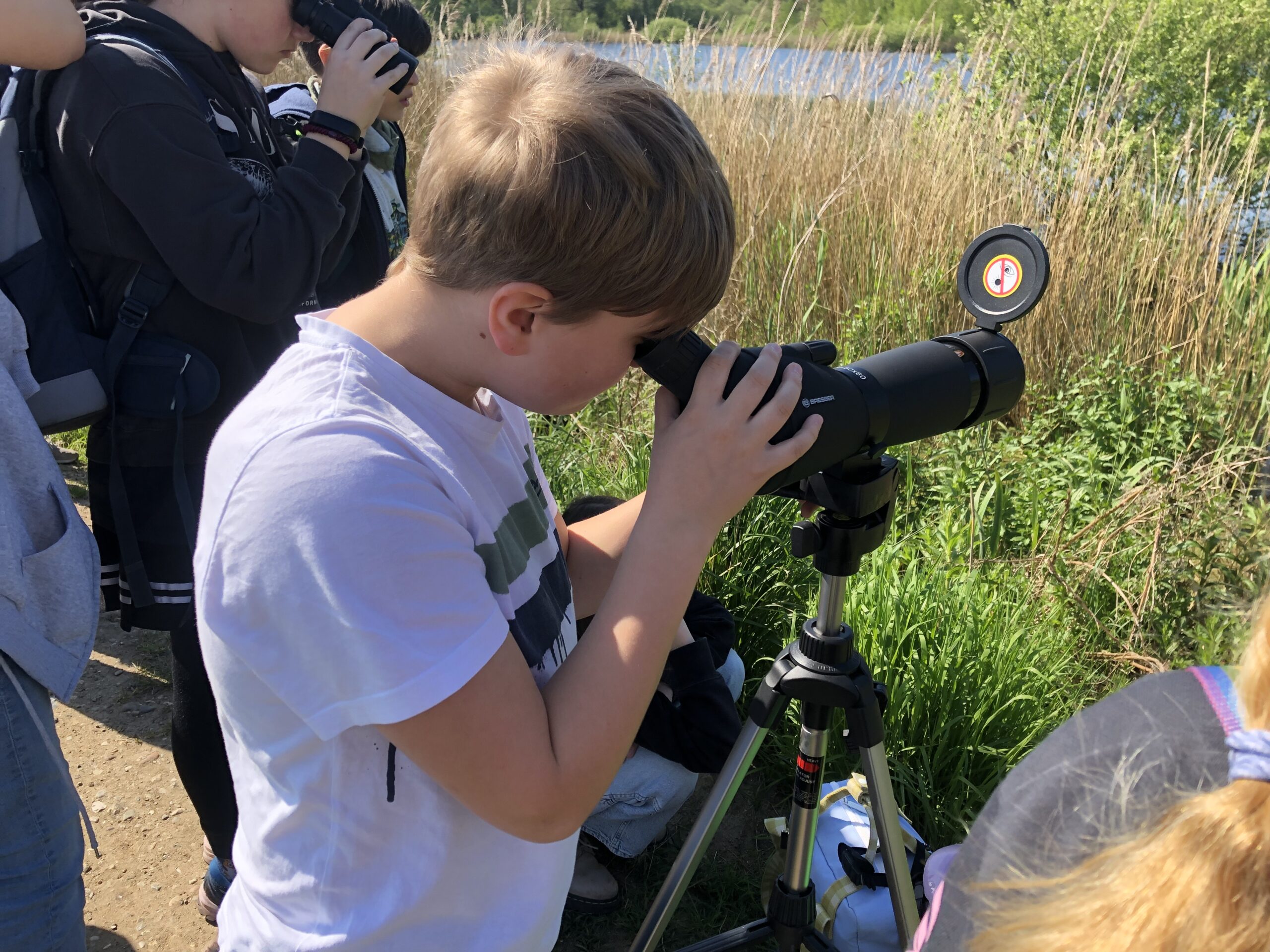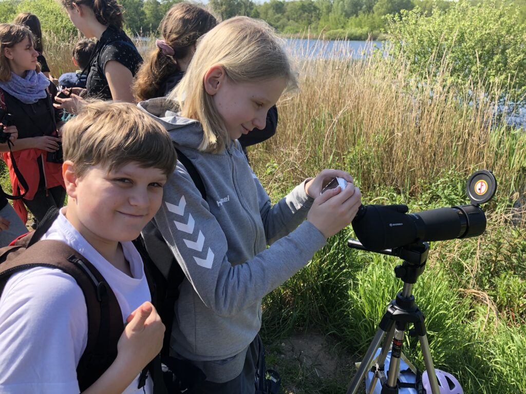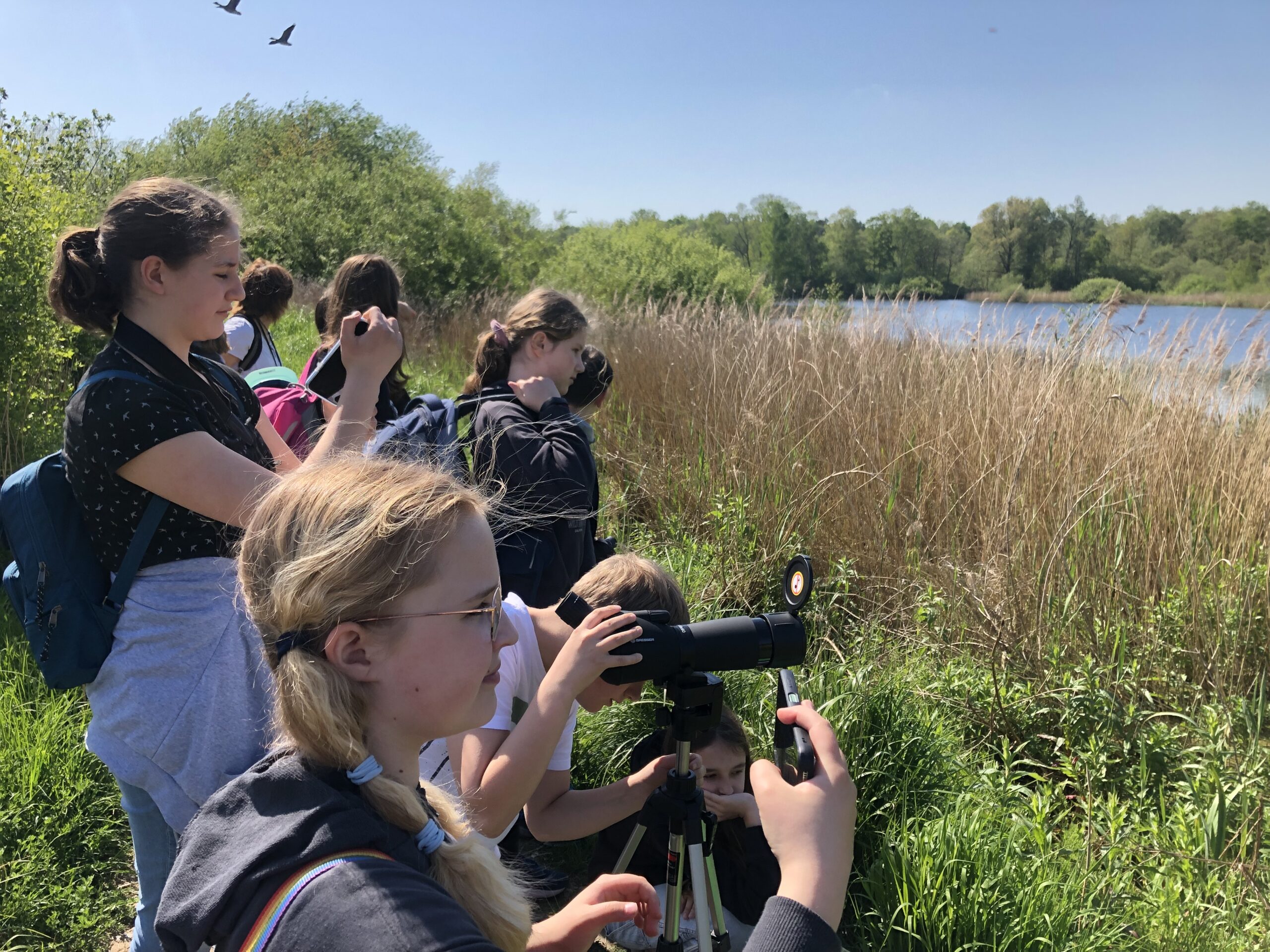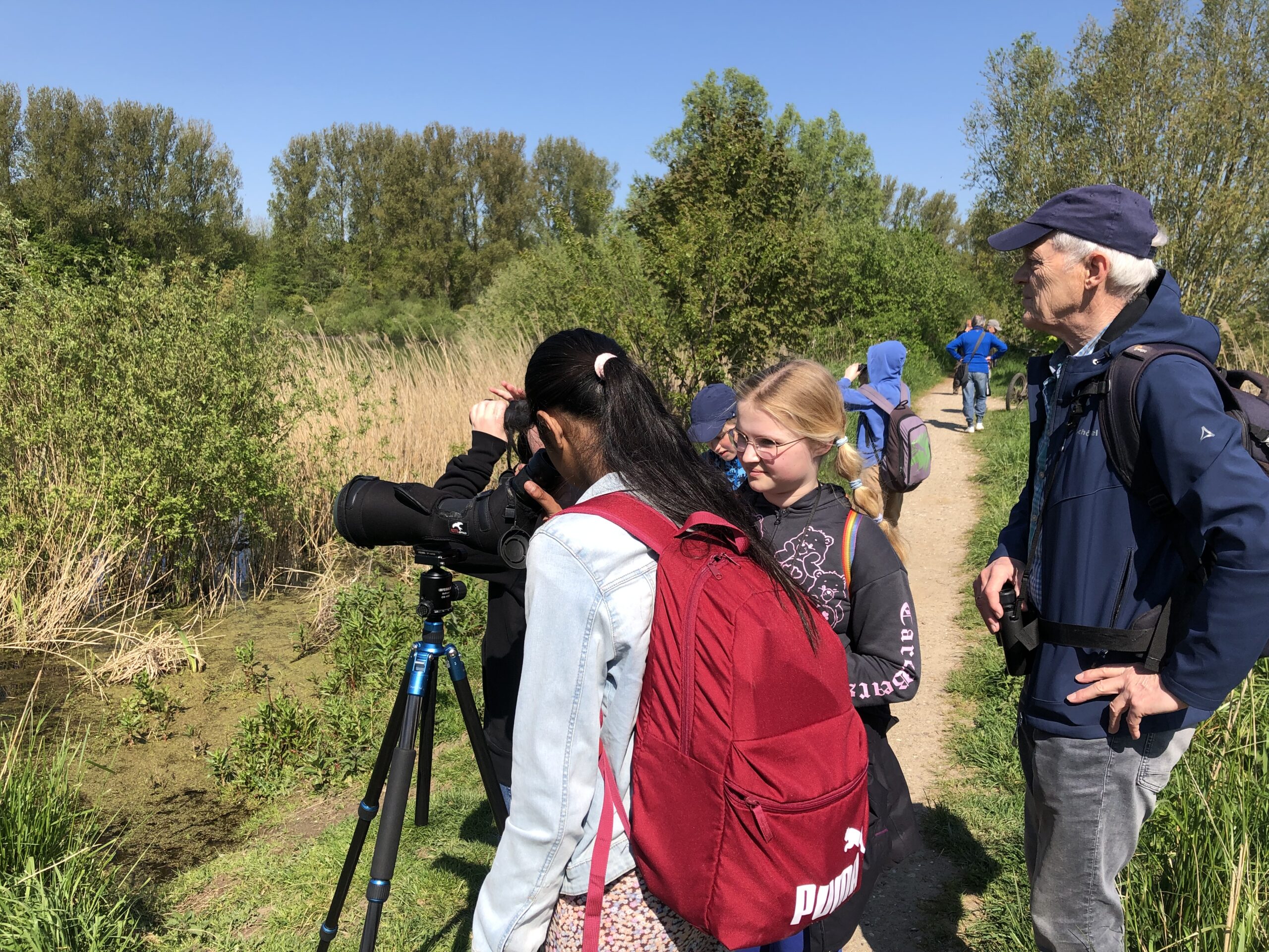 Am sonnigen 3. Mai waren wir, die 6d, im Schellbruch unterwegs. Dort gibt es über 200 Vogelarten, von denen wir ungefähr 26 gesehen und gehört haben. Mit dem Sehen wäre es wohl schwierig geworden, hätten uns die beiden Vogelkundler nicht Ferngläser empfohlen.