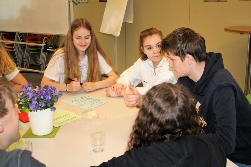 Damit war die Voraussetzung für die weitere inhaltliche Zusammenarbeit an den nächsten beiden Tagen gegeben. Am Donnerstag ging es darum, sich in Gruppen zu gesellschaftlichen und politischen Themen auszutauschen. Welche Mitbestimmungsmöglichkeiten hast du an deiner Schule? Welche Ausbildungsmöglichkeiten bestehen in deiner Stadt? Wo und wie willst du in zehn Jahren leben und was bedeutet die Europäische Union für dich? Über diese und weitere Aspekte kamen die Jugendlichen ins Gespräch.