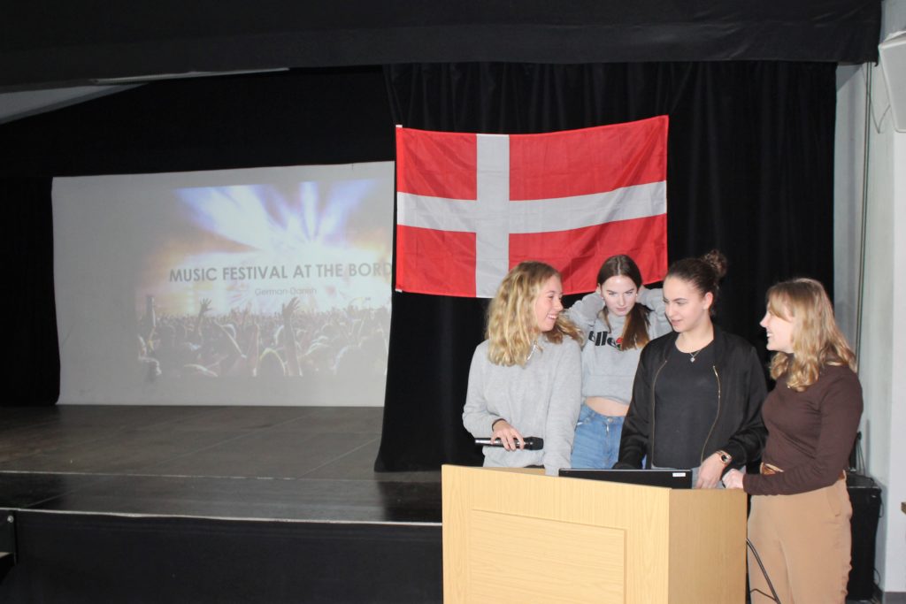 Die dänischen Schülerinnen und Schüler hatten sich im Vorwege mit dem Thema Freundschaft auseinander gesetzt und präsentierten nun die Ergebnisse in Form eines Gedichts, eines Kurzfilms und einer Talkshow. Damit bekamen die TMSler auch einen humorvollen Eindruck von dem Leben im Nachbarland.