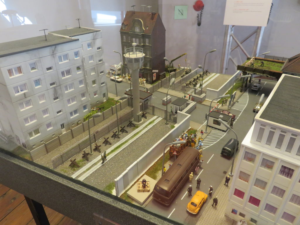 Passend zum Thema „Grenzen überwinden“ besuchten Deutsche und Dänen nach der intensiven Arbeit in der Schule die Sonderausstellung „Geteilte Stadt. 1945 – 1990“ im Willy-Brandt-Haus. Am Beispiel einer fiktiven Berliner Straßenkreuzung werden anhand von sieben Dioramen die Teilung der Stadt Berlin und ihre Auswirkungen auf die Bevölkerung veranschaulicht.