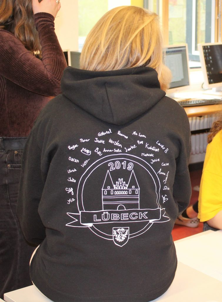 Für das Treffen hatten die dänischen Gäste eigens einen Hoody mit dem Holstentor auf der Rückseite entworfen, den sie jetzt mit Stolz trugen.