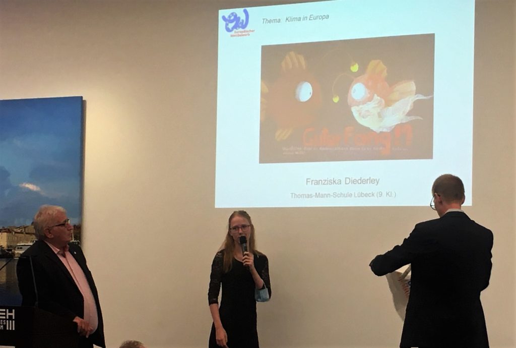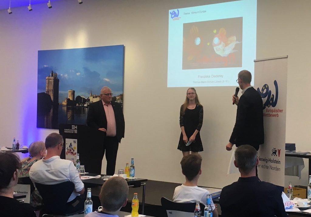 Torsten Johanßon, Landesbeauftragter des Europäischen Wettbewerbs, moderierte die Veranstaltung, Grußworte sprachen u.a. der Landtagspräsident Klaus Schlie, der den Wettbewerb unterstützt und für jede Altersgruppe einen Sonderpreis stiftet.