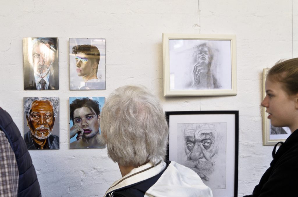 Wir stellten verschiedene Portraits in Ton, Öl, Aquarell, Bleistift und Kohle sowie Fotografien aus – und auch hier nahm das Sehen, der Blick, eine entscheidende Rolle ein. Wir haben gelernt, intensiv zu sehen sowie unseren Blick und unsere Gedanken auf Details zu richten, die vielen möglicherweise als nebensächlich vorkommen würden.