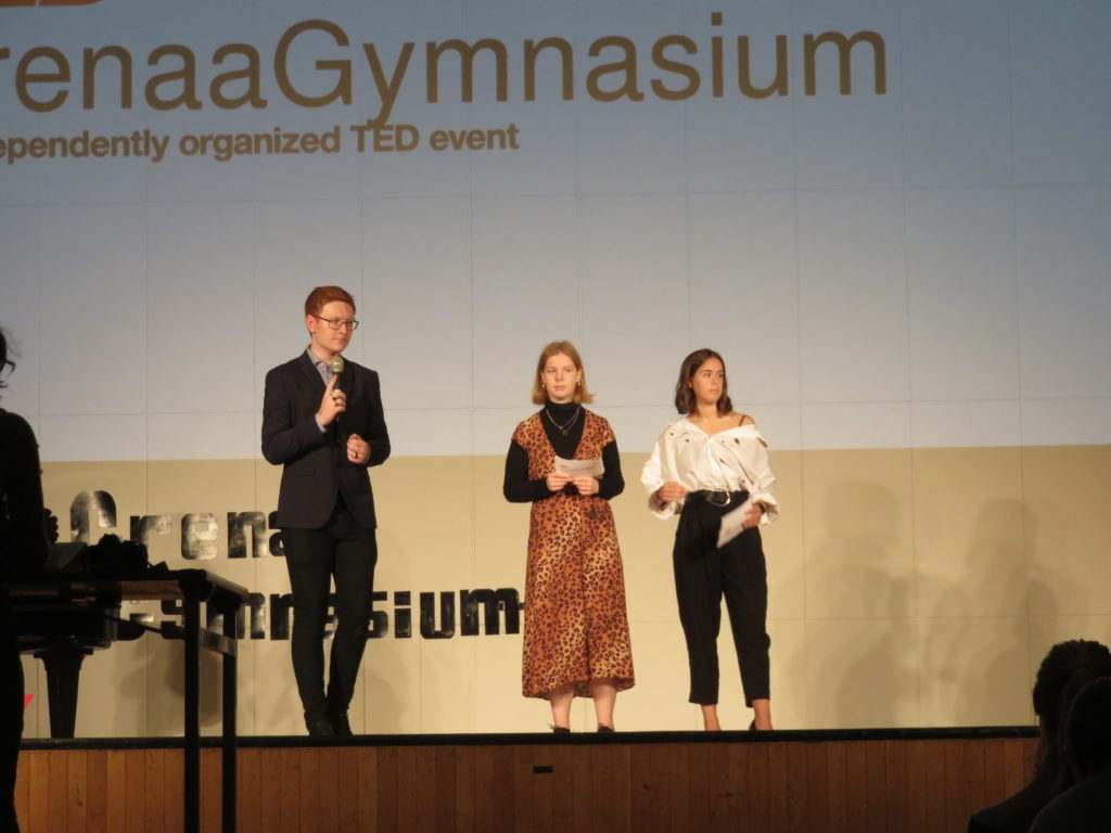 In der Aula herrschte an diesem Tag große Aufregung: Die Schülerschaft des Gymnasiums hatte eine Tedx-Konferenz mit neun Talks vorbereitet, die aufgezeichnet und ins Netz gestellt werden sollten. Wir hatten die Gelegenheit, den ersten Programmpunkt mitzuerleben: Die IB-Schülerin Francesca Maffini hielt auf Englisch einen Vortrag über „KeyToHappiness“.