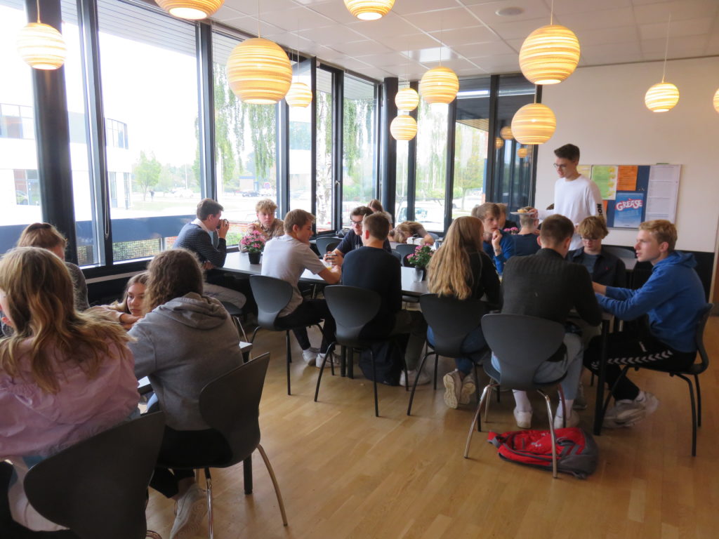 Während die dänischen SchülerInnen noch den ersten Unterrichtsblock absolvierten, begann der Donnerstagmorgen für die deutschen Gäste mit einem Frühstück im benachbarten Boardinghouse (Internat). Am Gymnasium Grenaa kann man das IB erwerben (International Baccalaureate), ein internationales Abitur, das weltweit hohe Anerkennung genießt. Etwa 100 bis 120 Schülerinnen und Schüler aus der ganzen Welt, u.a. aus den USA, Japan, einigen afrikanischen und arabischen Staaten, sind eingeschrieben und wohnen im Internat.