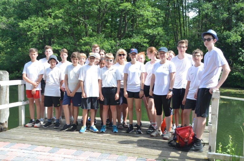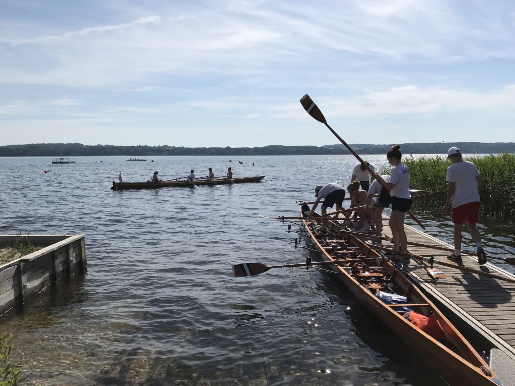 Als wir auf den Ratzeburger See fuhren, präsentierte sich dieser als vermeintlich ruhig. Diese Ruhe hielt jedoch nicht an, denn je weiter wir hinauffuhren, umso höher wurden die Wellen. Aufgrund der guten Ausbildung unserer Ruderer und Steuerleute kamen wir alle gesund und munter in Pogeez an. Dort bauten wir schnell die Zelte auf, um uns anschließend im See abzukühlen.