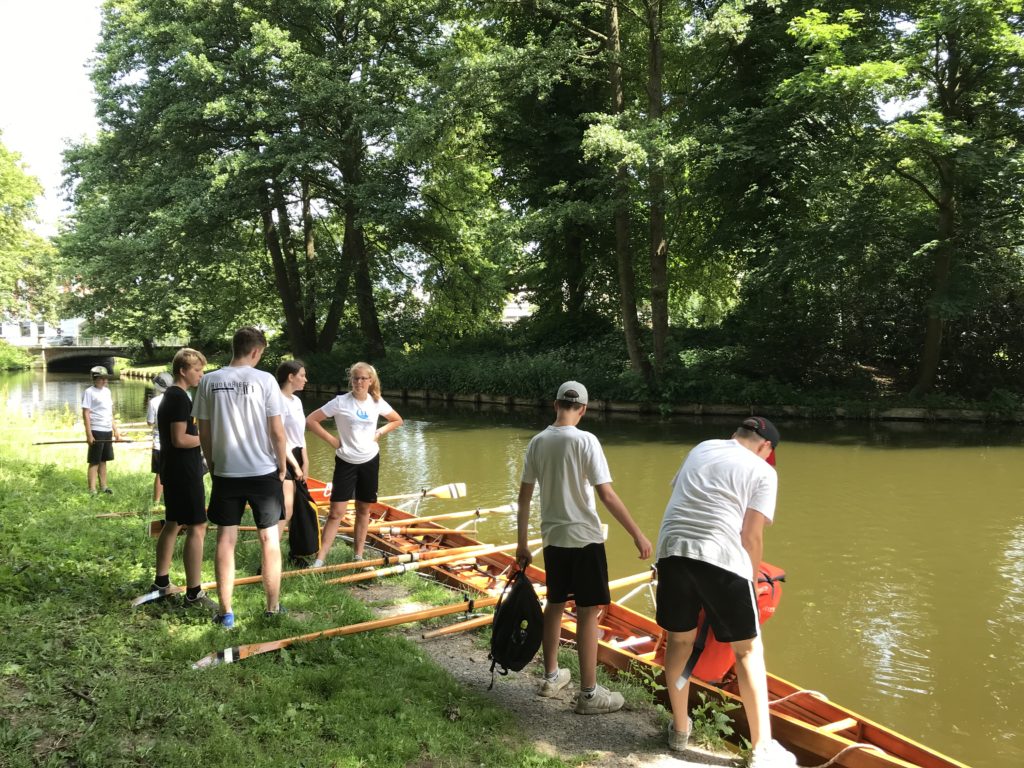Zwei ehemalige Ruderinnen und Abiturientinnen, Bente und Wenke, unterstützten uns in diesem Jahr mit dem Fahrdienst. Außerdem kümmerten sie sich um das leibliche Wohl, während die Ruderinnen und Ruderer sich bei einem Fußballspiel erholten. Anschließend aßen wir gemeinsam das Grillgut und ließen den Abend entspannt ausklingen.
