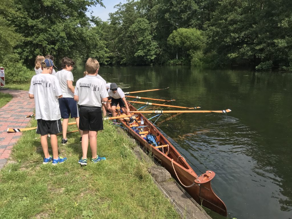 Bei sehr warmen sommerlichen Temperaturen starteten wir am Montag gegen 15 Uhr mit sechs Booten Richtung Pogeez. Der Startpunkt war wie immer der Düker, der die Verbindung zur Wakenitz darstellt. In diesem Jahr nahmen viele Ruderinnen und Ruderer der Riege teil, von denen einige erst in diesem Jahr das Rudern gelernt haben. Alle hatten in den letzten Wochen so große Fortschritte gemacht und sind viele Kilometer auf dem Wasser gerudert, dass der 34 km langen Fahrt nach Pogeez nichts im Wege stand.