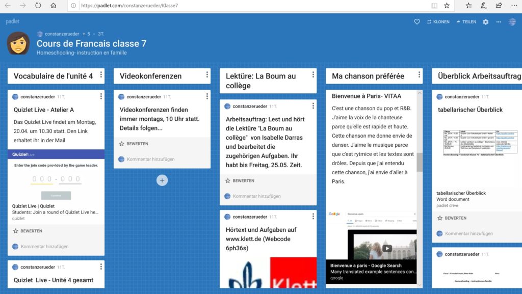 Auf Seiten der Lehrer stellten sich andere Fragen: Welcher Umfang an Aufgaben ist angemessen? Welche Themen können Schülerinnen und Schüler zu Hause alleine bewältigen? Wie stelle ich abwechslungsreiche Aufgaben? Viele Lernplattformen bieten z.Z. für Lehrkräfte kostenlose Zugänge an. Also anmelden, Prüfen der Tutorials, Arbeitsblätter, Online-Übungen. Man wählt aus, verwirft, sucht weiter, schreibt vieles schließlich doch selbst oder nimmt ein Video auf. Padlet, Mentimeter, Quizlet – Versuch macht klug.