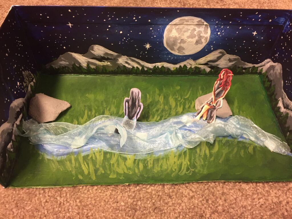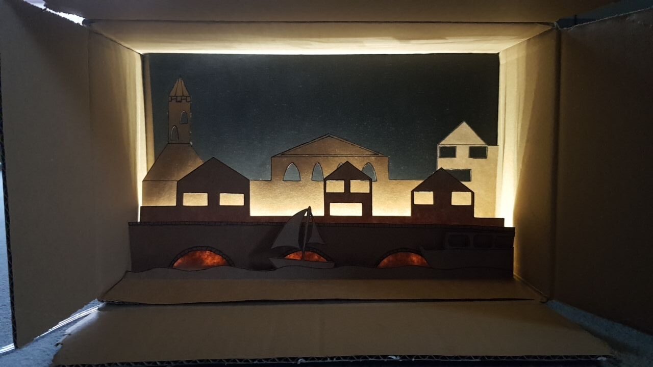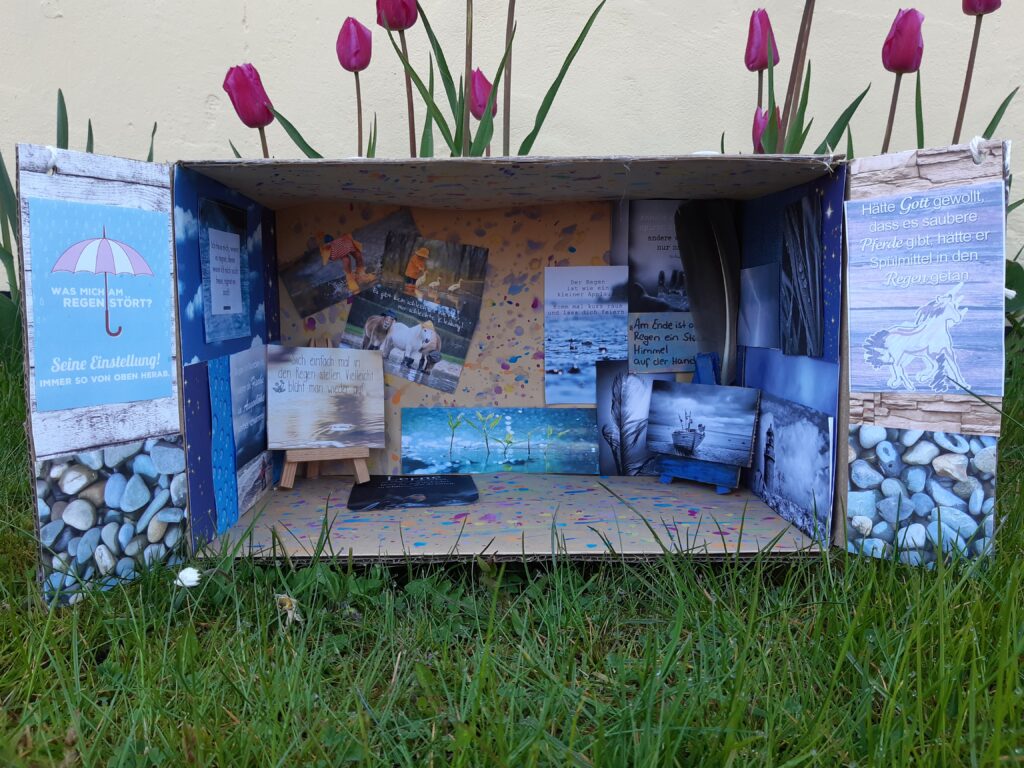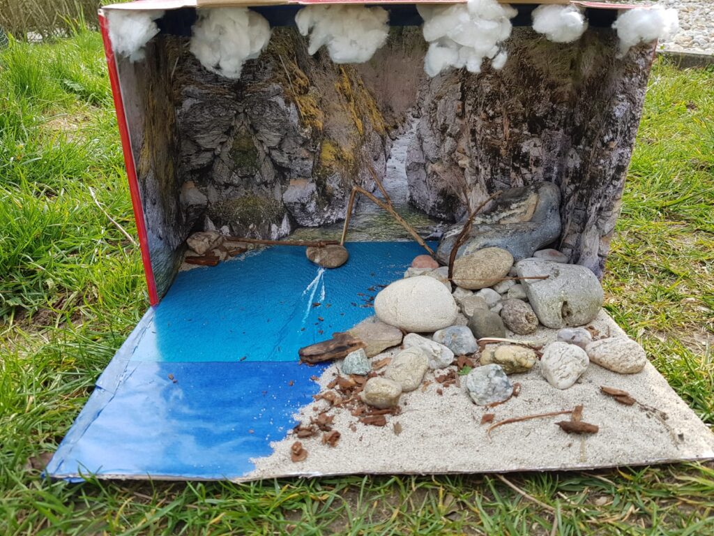 Die erste Aufgabe bestand darin, eine Szene aus den Musikstücken zum Thema Wasser in einem Guckkasten nachzubauen.