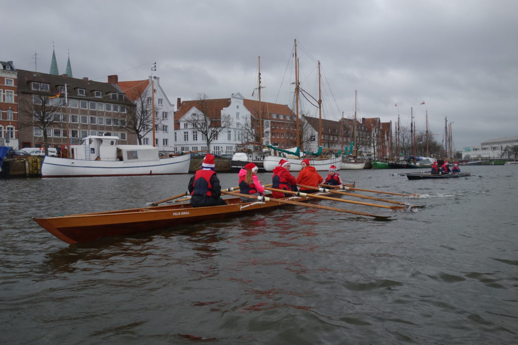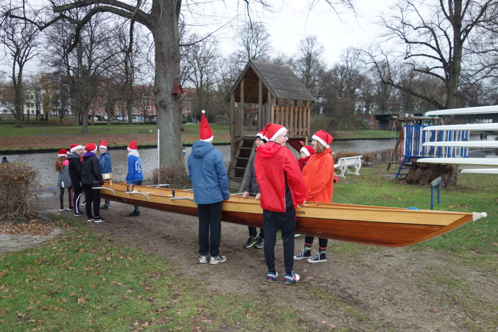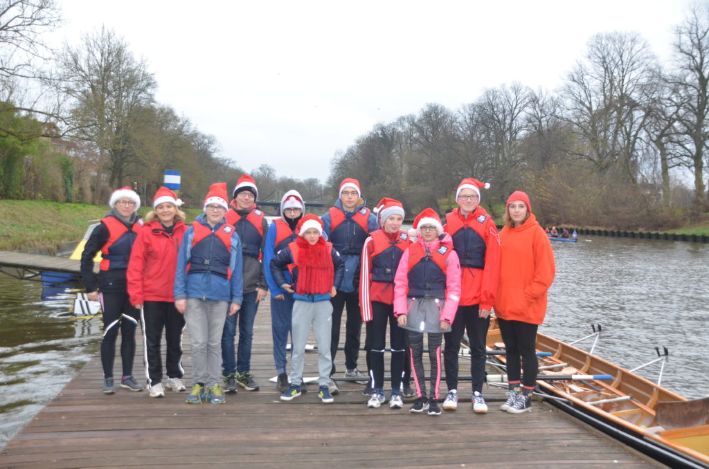 Am 6.12. fand wieder das traditionelle Nikolausrudern statt. Alle Ruderinnen und Ruderer kamen als Nikolaus verkleidet ins Ruderhaus, um gemeinsam um die Stadt zu rudern. Neben der Ruderriege der Thomas-Mann-Schule beteiligten sich in diesem Jahr ebenso das Burkhardt-Gymnasium und das Katharineum.