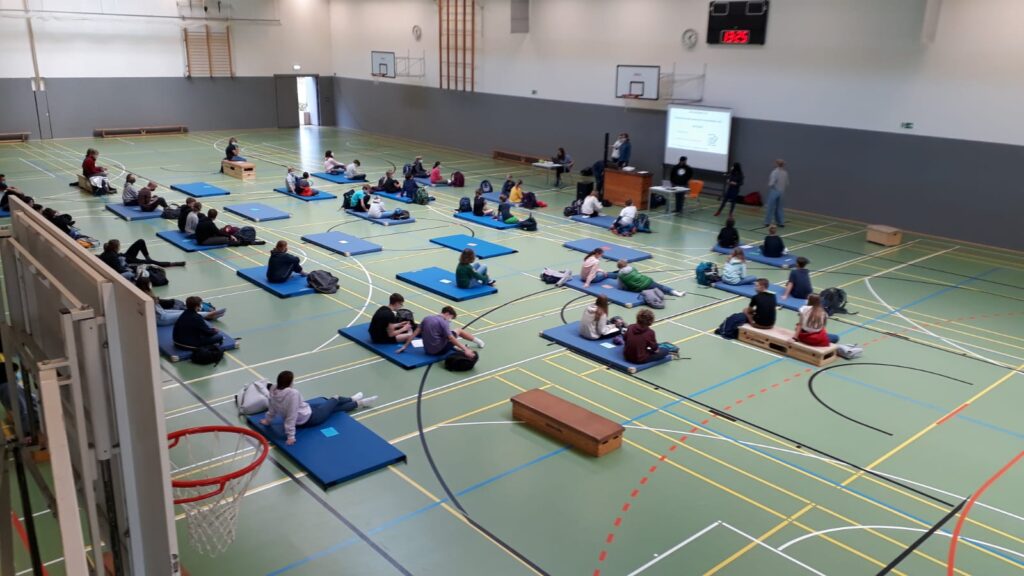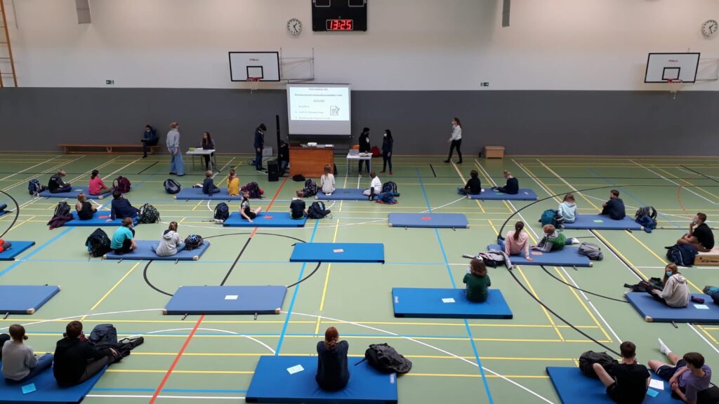 Heute hat bei uns an der TMS die erste Klassensprecher:innenvollversammlung des Schuljahres getagt – in der Sporthalle mit Abstand zwischen den verschiedenen Kohorten. Die Klassensprecher:innen wählten die Schülervertreter für verschiedene Posten. Auf der Schulkonferenz oder den Fachschaftskonferenzen können sich Schüler:innen am Schulalltag der TMS beteiligen und diesen mitgestalten. Darüber hinaus wurden Vertreter:innen für das Stadtschüler:innenparlament und das Landesschüler:innenparlament gewählt.