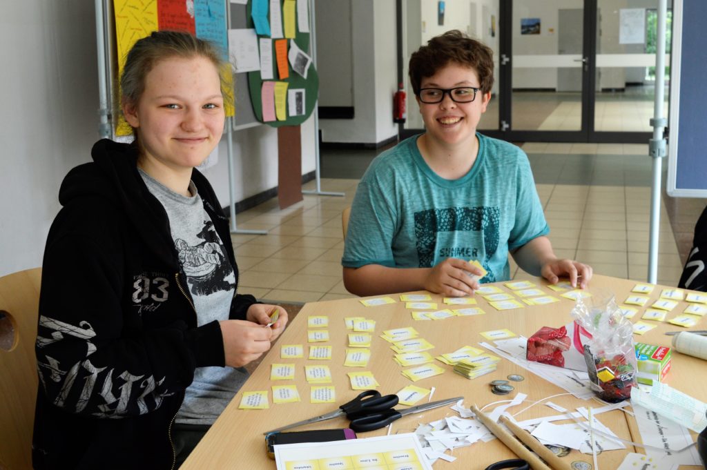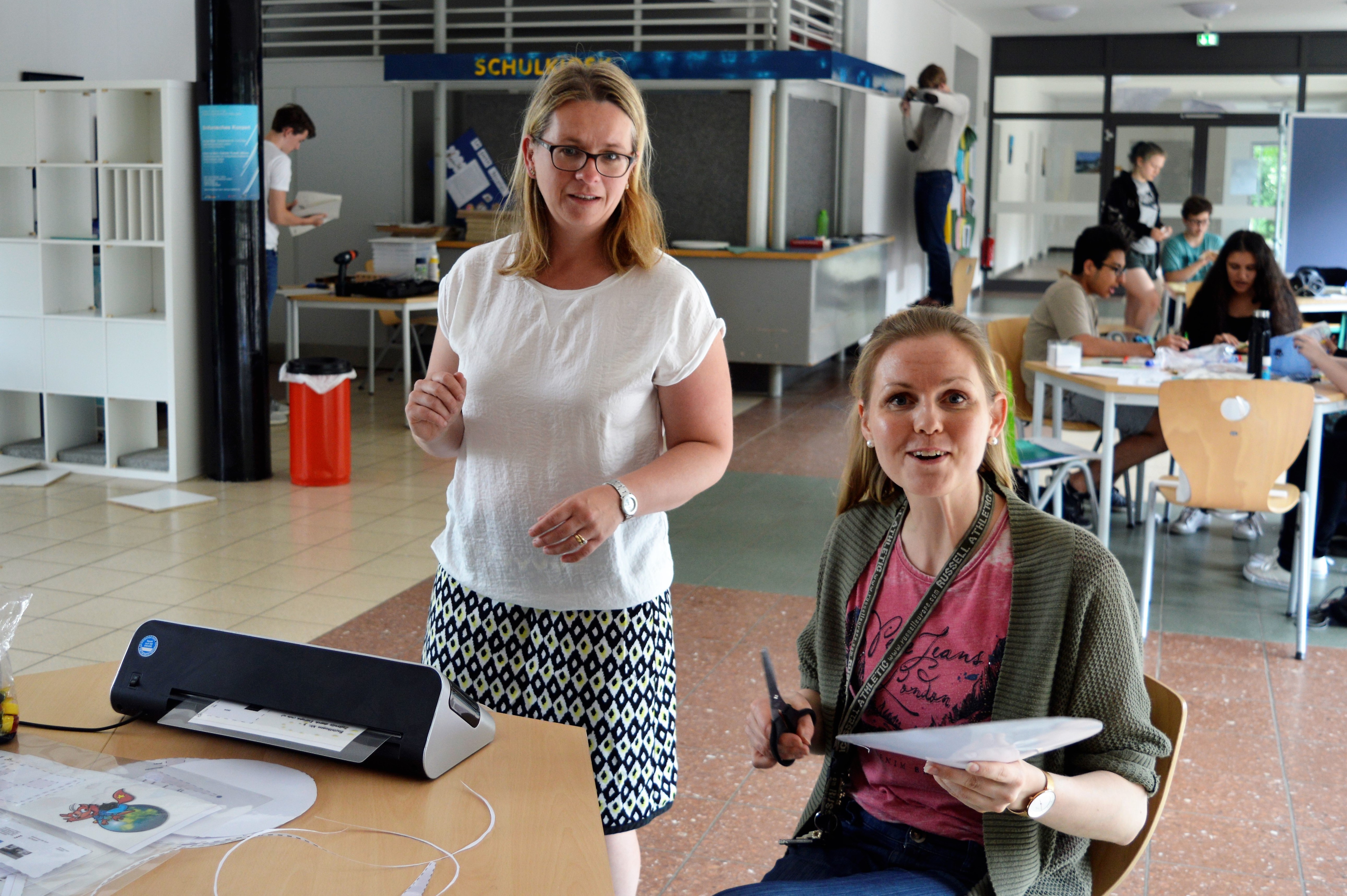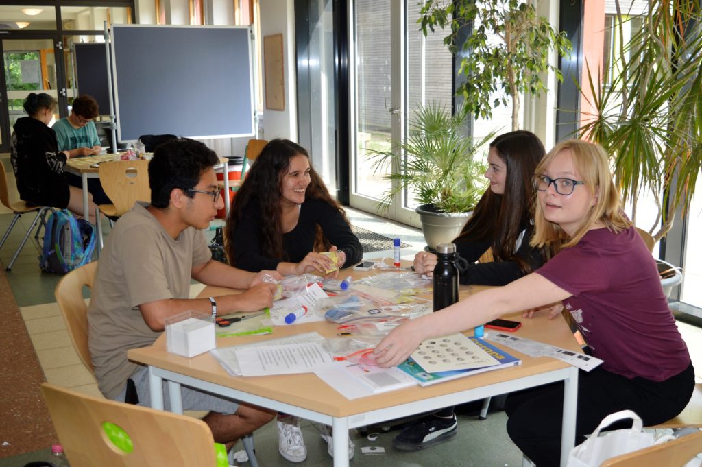 Außerdem hatten sie zusammen mit den Seniorbotschafter genannten Lehrern Material für die spielerische Erarbeitung des Themas „Europa“ für jüngere Schülerinnen und Schüler vervielfältigt, ausgeschnitten und laminiert. Insgesamt stehen jetzt fünf Boxen mit Unterrichtsmaterial für die Unter- und Mittelstufe und ebenso viele Boxen für die Mittel- und Oberstufe zur Verfügung.