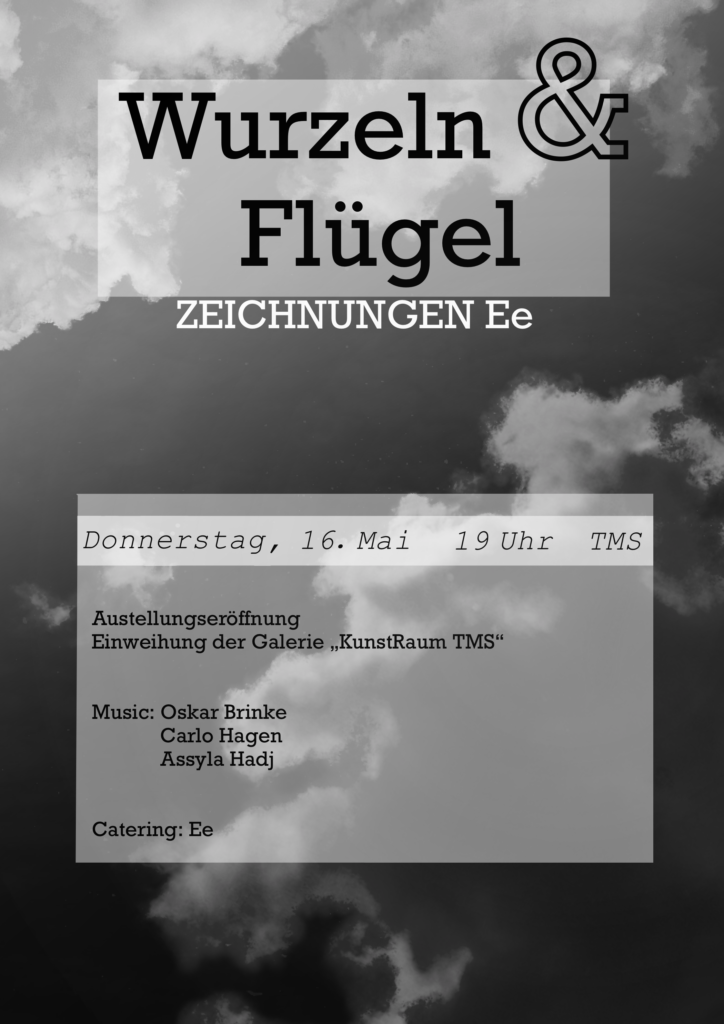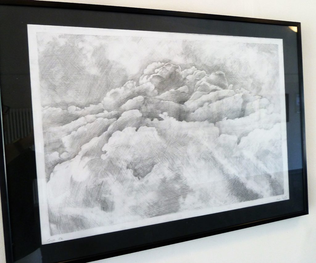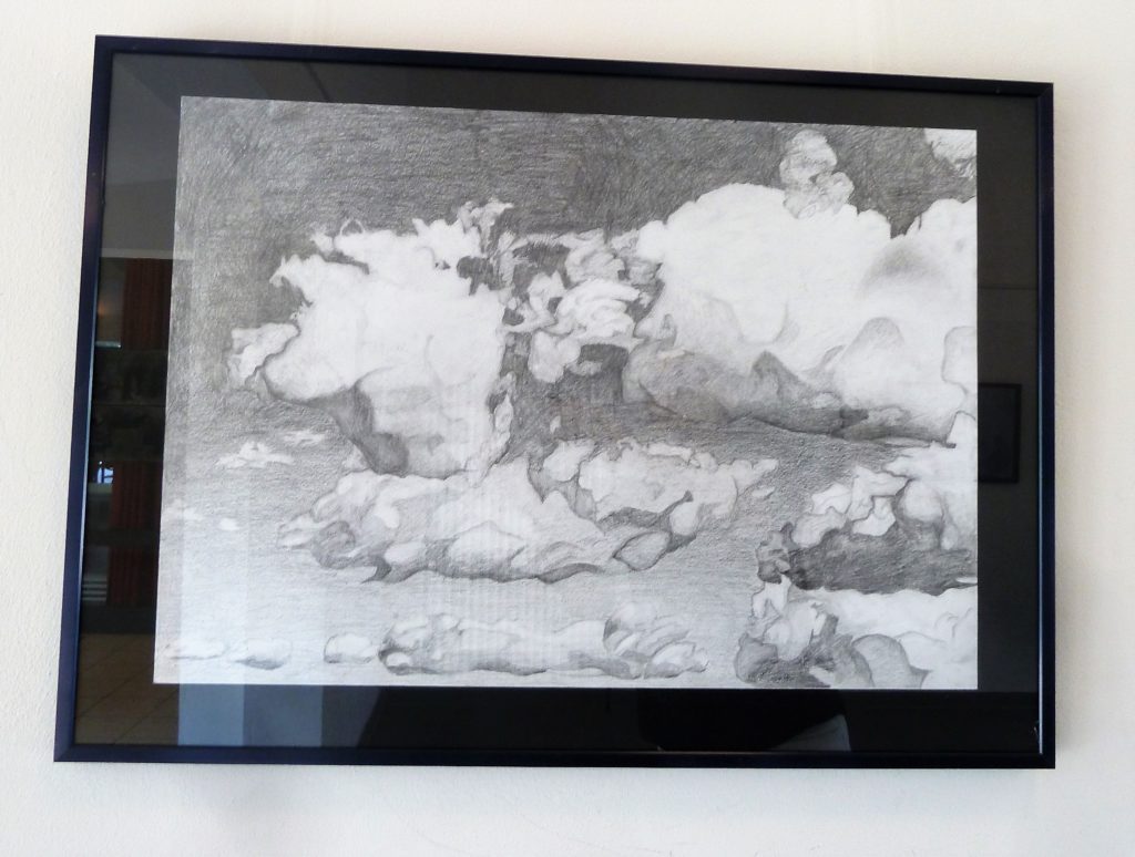 Ausgestellt werden nun bis zu den Sommerferien 2019 großformatige Zeichnungen von Wolkendarstellungen sowie Doppelbildnissen unter dem Motto „Wurzeln und Flügel“.
