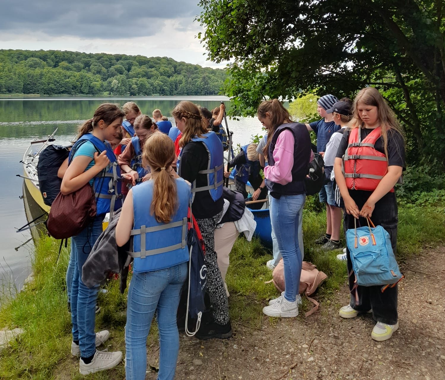 Zum Schluss paddelten wir mit einem Drachenboot und einem Kanu über den Küchensee. Die Kanugruppe mit fünf Jungen sowie Herrn Günther startete sieben Minuten vor dem Drachenboot, sodass es dann zu einer Wettfahrt kam. Die Gruppe mit dem Kanu gewann knapp, obwohl sich alle im Drachenboot mächtig anstrengten.